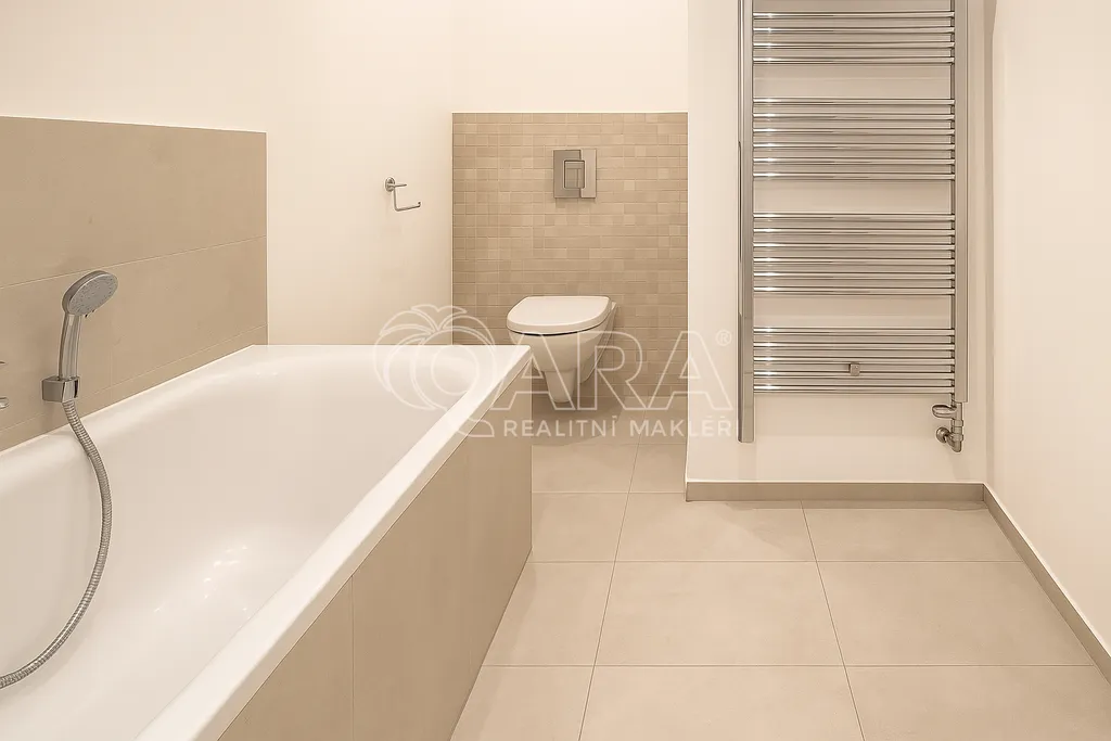 Byt se nachází ve 4. patře udržovaného domu s výtahem. (Celá budova prochází kompletní rekonstrukcí, která bude dokončena na konci tohoto roku). Vstupní a spojovací hala, 3 prostorné ložnice, obývací pokoj, kuchyň s kuchyňskou linkou (lednice s mrazákem, sporák, trouba, digestoř a myčka). Dvě koupelny: koupelna s vanou a sprchovou zástěnou, dvojumyvadlem a WC, samostatné WC, koupelna se sprchovým koutem, umyvadlem a pračkou se sušičkou. K dispozici je také komora, balkon do klidného dvora se zelení a sklep.