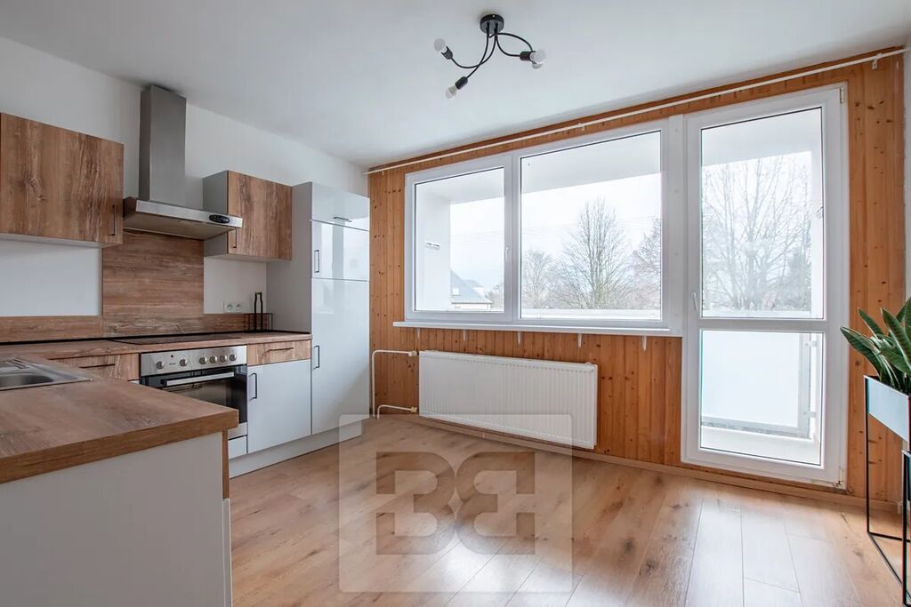 Součástí bytu je nová kuchyňská linka vybavená všemi potřebnými spotřebiči – myčkou, pračkou, lednicí, troubou i varnou deskou. Byt se jinak pronajímá nevybavený. V předsíni se nachází praktická vestavěná šatní skříň.