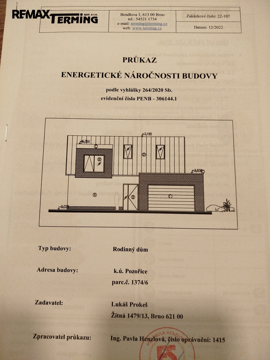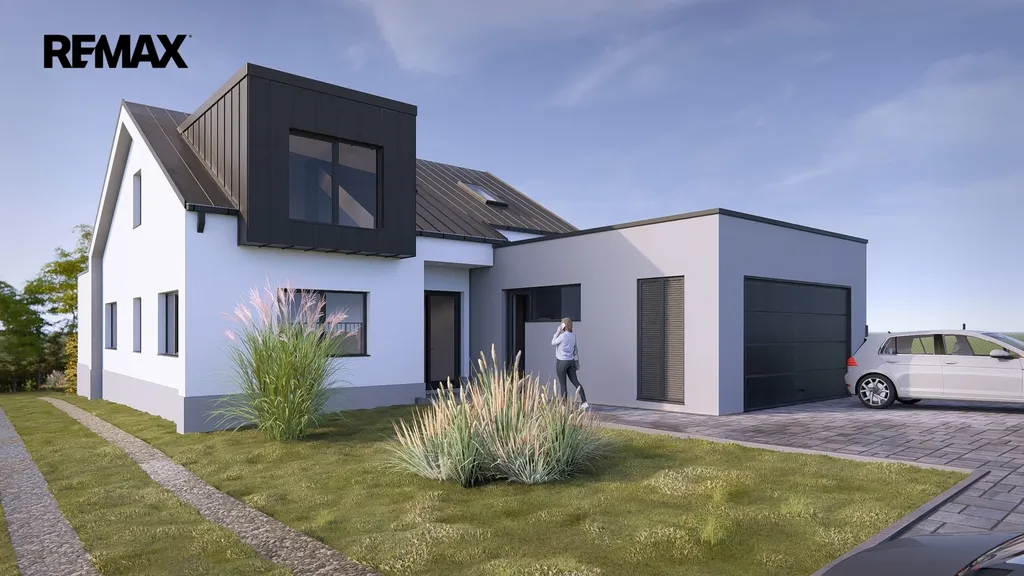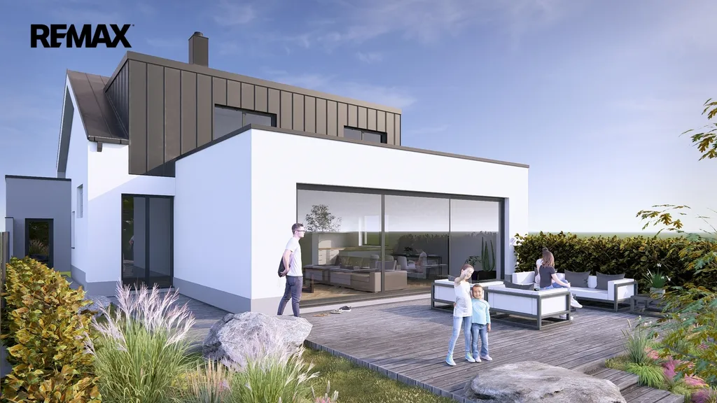 Na pozemek je již vydáno platné stavební povolení na výstavbu moderního rodinného domu o dispozici 6+kk, s garáží a celkovou užitnou plochou cca 277 m², z toho obytná část přibližně 180 m². Cena zahrnuje výstavbu hrubé stavby, která bude realizována na základě konkrétní dohody. Součástí hrubé stavby jsou základy, hydroizolace, vodorovné a svislé konstrukce, zastřešení včetně klempířských a zámečnických prvků. Dokončení domu je možné podle přiložených vizualizací.