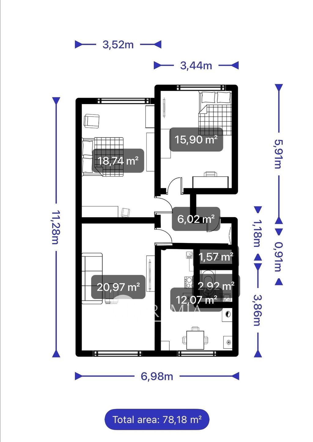 Vzhledem k velikosti bytu je vhodný maximálně pro 5 osob. Byt se pronajímá se základním vybavením (kuchyňská linka, trouba, varná deska, digestoř). Byt bude k nastěhování po domluvě.