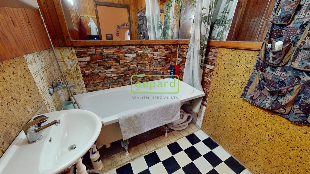 V koupelně se nachází nová akrylátová vana a nové umyvadlo, vzhledem k tomu, že koupelna je již vyzděná, stačí dodělat obklady a nemusí se provádět celá rekonstrukce, což vám umožní upravit si byt dle vlastního vkusu, ale nemusíte dělat nákladnou a pracnou rekonstrukci a bourací práce.