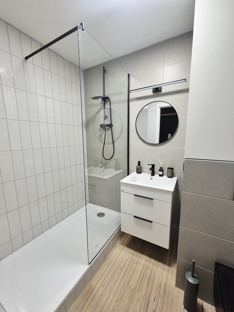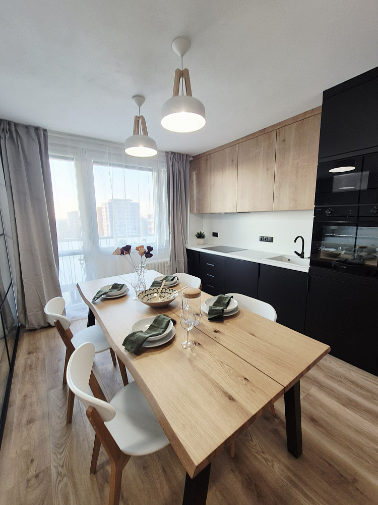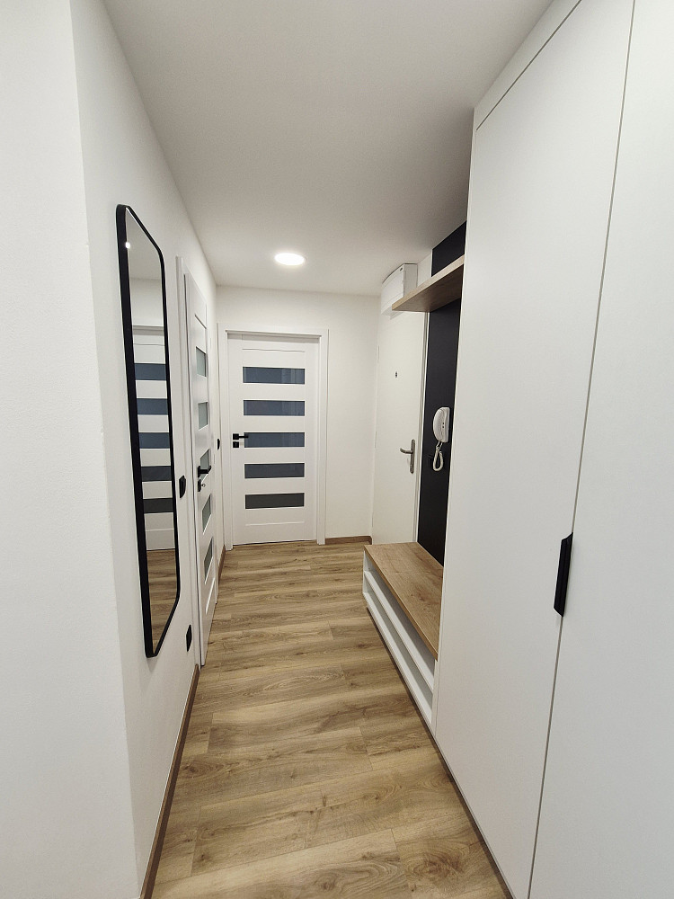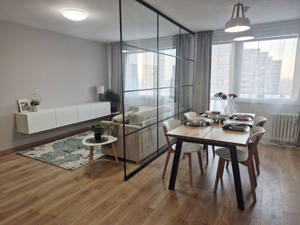 Byt je po kompletní rekonstrukci (11/2025) navržené architektkou, kdy byla provedena celková změna dispozice a při které se myslelo na každý detail. V celém bytě položena kvalitní laminátová německá Meister podlaha, dále nová kuchyňská linka na míru vč. vestavné kvalitní lednice, myčky, horkovzdušné trouby, sklokeramické varné desky, digestoře a granitového dřezu, nová koupelna se sprchovým koutem, závěsným WC, dále vestavěný nábytek na míru v chodbě, ložnici, obývacím pokoji, koupelně, nové štukové omítky, elektroinstalace v mědi, nové rozvody odpadů, vody, interiérové dveře s obložkami, LED osvětlení, nové bezpečnostní a protipožární vchodové dveře s třídou ochrany 3. Odpad v kuchyni zajišťuje přečerpávací stanice Grundfos. V bytě příprava na internet. Příprava na pračku/sušičku je v samostatné vestavné skříni u kuchyňské linky. V bytě dostatek úložných prostor a možnost variability s umístěním ložnice a dětského pokoje/pracovny (do obou ložnic se vejde manželská postel). Vytápění a ohřev TUV je řešeno dálkově. Všechny kuchyňské spotřebiče se záručním listem (4 roky). Byt je prodáván včetně veškerého vybavení, které je již v ceně. V bytě po rekonstrukci nikdo nebydlel.