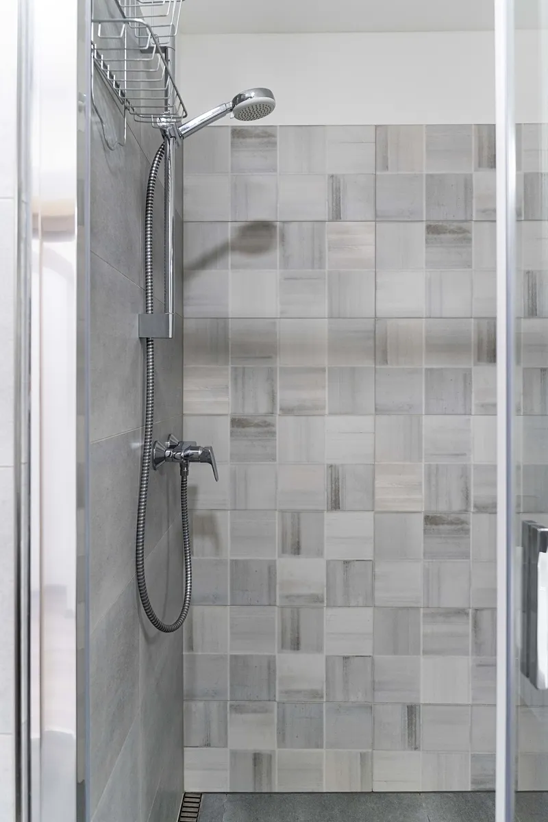 Horní část bytu nabízí dva pokoje, které poskytují dostatek soukromí. Z jednoho z těchto pokojů je přístup na zasklenou lodžii, která je skvělým místem pro relaxaci a užívání si výhledu do okolí. Koupelna je vybavena moderním sprchovým koutem, umyvadlem a je zde také umístěna toaleta.
