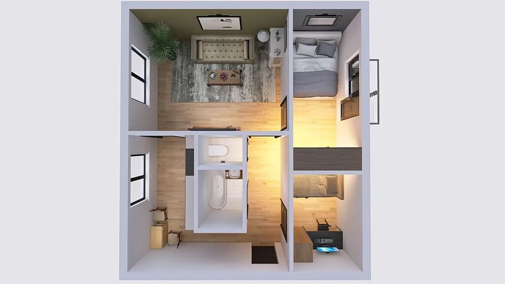 V současné době se na bytě dokončuje rekonstrukce celého bytu, což zahrnuje nové rozvody elektřiny, zděné jádro, nové omítky a plovoucí podlahy, které poskytují moderní a komfortní bydlení. Kromě toho byly instalovány nové interiérové dveře, což dodává bytu elegantní vzhled a zajišťuje jeho funkčnost. V galerii fotek naleznete možnou vizualizaci dvou pokojů.