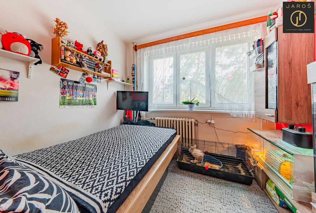 Dispozice bytu nabízí samostatnou kuchyň, prostorný obývací pokoj a původně jeden velký ložnicový pokoj, který je aktuálně předělen sádrokartonovou příčkou na dva menší pokoje. Tento prostor lze nadále využít buď jako dva samostatné dětské pokoje, pracovny či šatny, nebo jej jednoduše vrátit do původní velikosti.