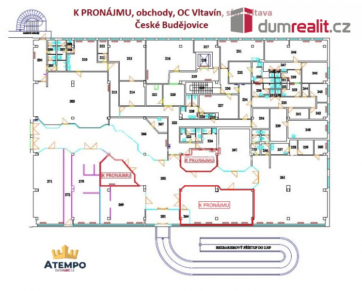 Dumrealit.cz Vám zprostředkuje pronájem komerčních prostor v OC Vltavín na sídlišti Vltava ve městě České Budějovice. K pronájmu prosklený prostor atypického tvaru. Cena nájemného je 5.600,- Kč + energie 2.400,- Kč/měsíc. Do objektu umožněn bezbariérový vstup. Součástí pronájmu je parkovací stání v uzavřeném dvoře. Možnost využití zásobovací rampy a malého skladu. Více informací Vám poskytne realitní makléř Pavel Čada z realitní kanceláře A TEMPO fungující pod ochrannou známkou dumrealit.cz. Ev. číslo: 641648.