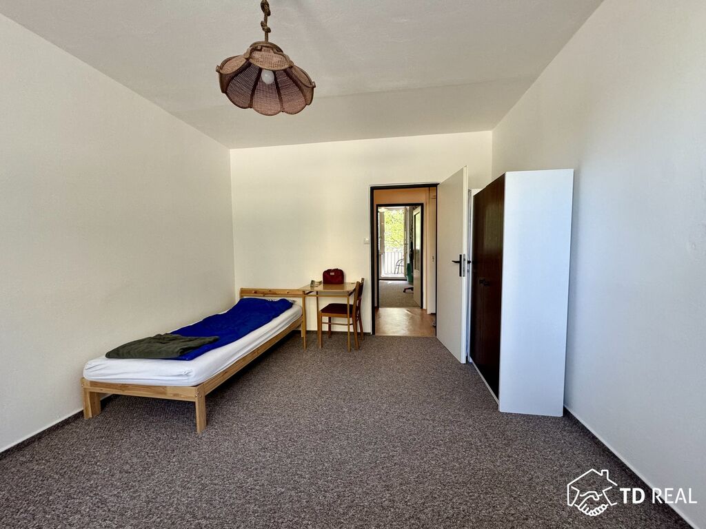 Byt je vybaven KL, sporákem, lednicí, pračkou. Pokoje budou prázdné.
