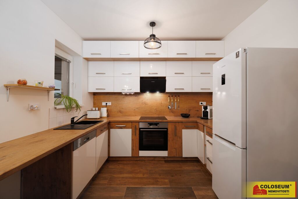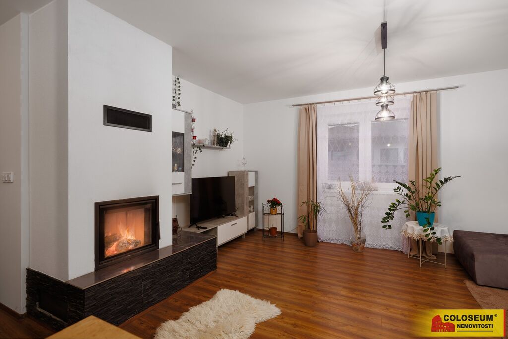 - prostorný obývací pokoj s kuchyní a krbovými kamny