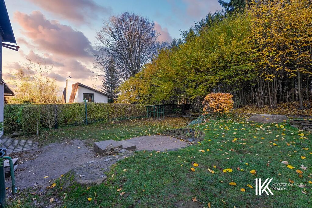 Právní přístup k pozemku je po obecní nezpevněné komunikaci. Zkraje je pozemek mírně svažitý, začíná vlastní dlážděnou příjezdovou pěšinou a přístřeškem pro auto. Celkem zde lze pohodlně zaparkovat až 4 auta (za sebou v řadě). Zbytek parcely se otevírá za chatou, jihovýchodně směrem k lesu. Rozkládá se tam zahrada s ohništěm, zděným venkovním grilem, udírnou a přístřešky na dřevo či techniku. Celý pozemek je obehnán vzrostlým živým plotem, který dopřává soukromí a krásně rámuje prostor mezi zahradou a volně navazujícím hájem.