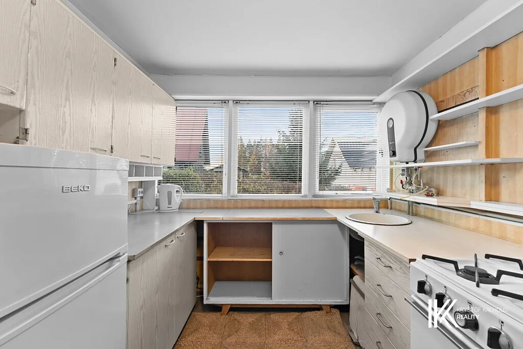 První jednotka o užitné ploše cca 40 m² prošla modernizací a působí svěže a útulně. V přízemí vás přivítá obývací pokoj s kuchyňskou linkou vybavenou dřezem, sporákem na plynovou bombu a lednicí. Po boku kuchyňské linky se otevírá výstup ven na zahradu, do její jihovýchodní části otevírající se směrem k lesu. Dále se v přízemí nachází koupelna s moderním sprchovým koutem, umyvadlem a toaletou. Do patra vede typické chatařské schodiště a najdete tam dva malé pokojíky, které jsou oddělené pouze dispozičně, nikoliv dveřmi. Vytápění v této jednotce zajišťují kamna na tuhá paliva a klimatizace, která v létě prostor ochladí a v zimě přitopí. Naopak zde momentálně není zajištěn ohřev teplé vody, bojler chybí.