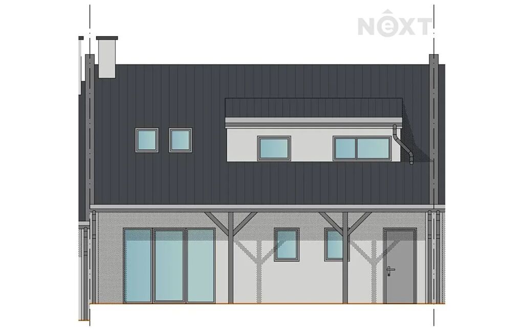 Dispozice domu: 1. NP: Vstupní zádveří navazuje na chodbu se schodištěm, ze které se vstupuje do velkého obývacího pokoje s kuchyňským koutem. Z obytného prostoru je přímý vstup na zastřešenou terasu a zahradu. Z chodby je přístupná garáž, sociální zařízení a také technická místnost s dalším vstupem na terasu.