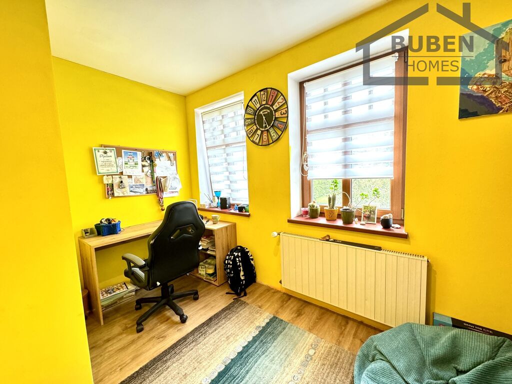 Předmětem prodeje je patrový, částečně podsklepený RD s kolnami a zahradou s fóliovníkem. 1.NP tvoří zádveří, chodba se schodištěm do patra a vstupem na zahradu, kuchyň s jídelnou a obývacím pokojem, ložnice, samostatné WC (v rekonstrukci) a spíž. Po schodišti vstoupíme do patra, kde jsou vybudovány 4 ložnice (jedna využívaná jako šatna), prostorná koupelna s WC (sprchový kout, vana), sklad (s boilerem). V mezipatře je vybudována přístavba sloužící jako prádelna. Podkroví je prostorné (cca 90 m2), zde je možné vybudovat další bytovou jednotku.