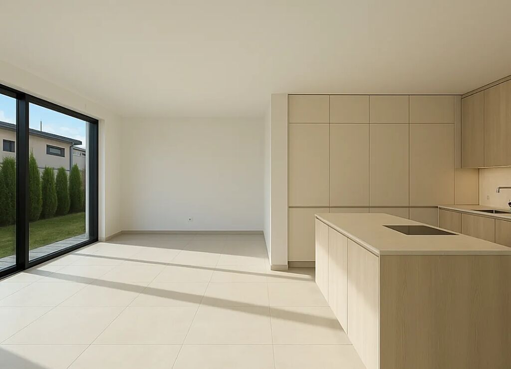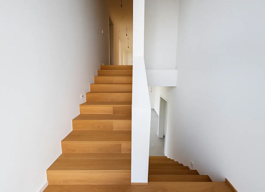Do domu vstoupíte elegantními hliníkovými dveřmi v antracitu, sladěnými s okny s trojskly a s přípravou na instalaci elektrických interiérových žaluzií. Interiér doplňují bezfalcové dveře s magnetickými zámky značky Vekra, které vytvářejí čistou moderní linii. V přízemí vás provede velkoformátová dlažba, zatímco v patře zahřeje dřevěná podlaha dub Harmony. Teplo i letní chlazení zajišťuje tepelné čerpadlo Stiebel Eltron, v každém pokoji doplněné vlastním termostatem umožňujícím individuální nastavení teploty. Samozřejmostí je podlahové vytápění a rekuperace.