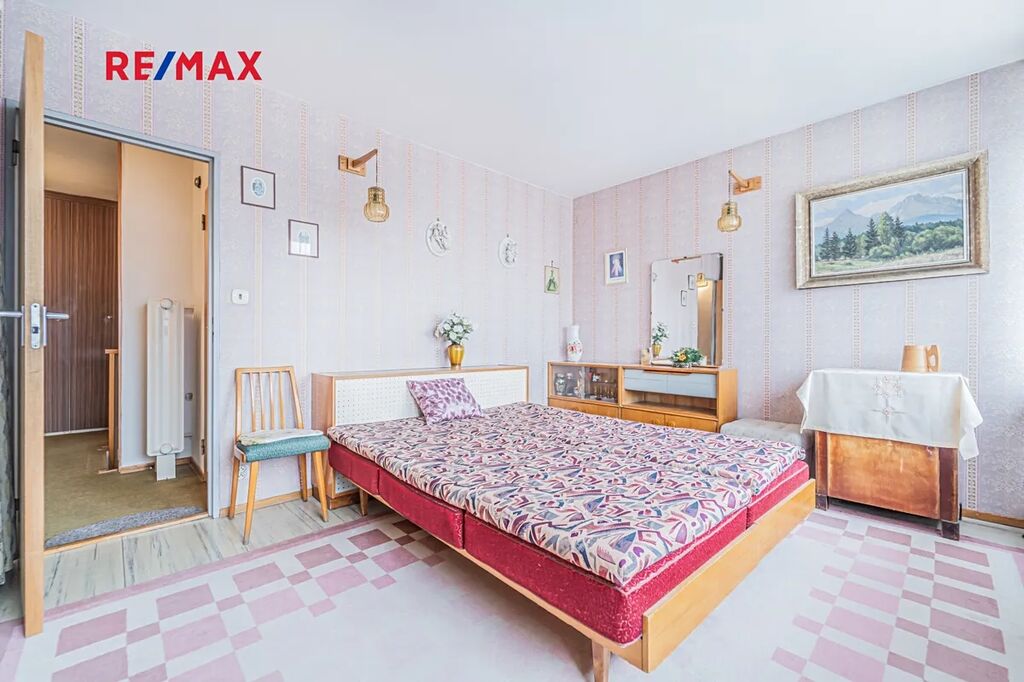 Ložnice (15,4 m²), dva pokoje (každý 9,2 m²), chodba (9,7 m²), koupelna s vanou (2,2 m²), samostatné WC (1,4 m²) a půda (54,7 m²).Celková obytná plocha: 145 m² (včetně garáže).