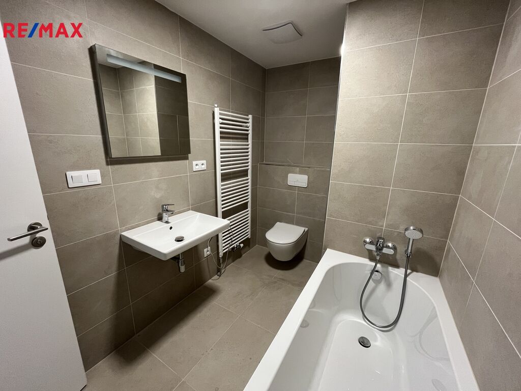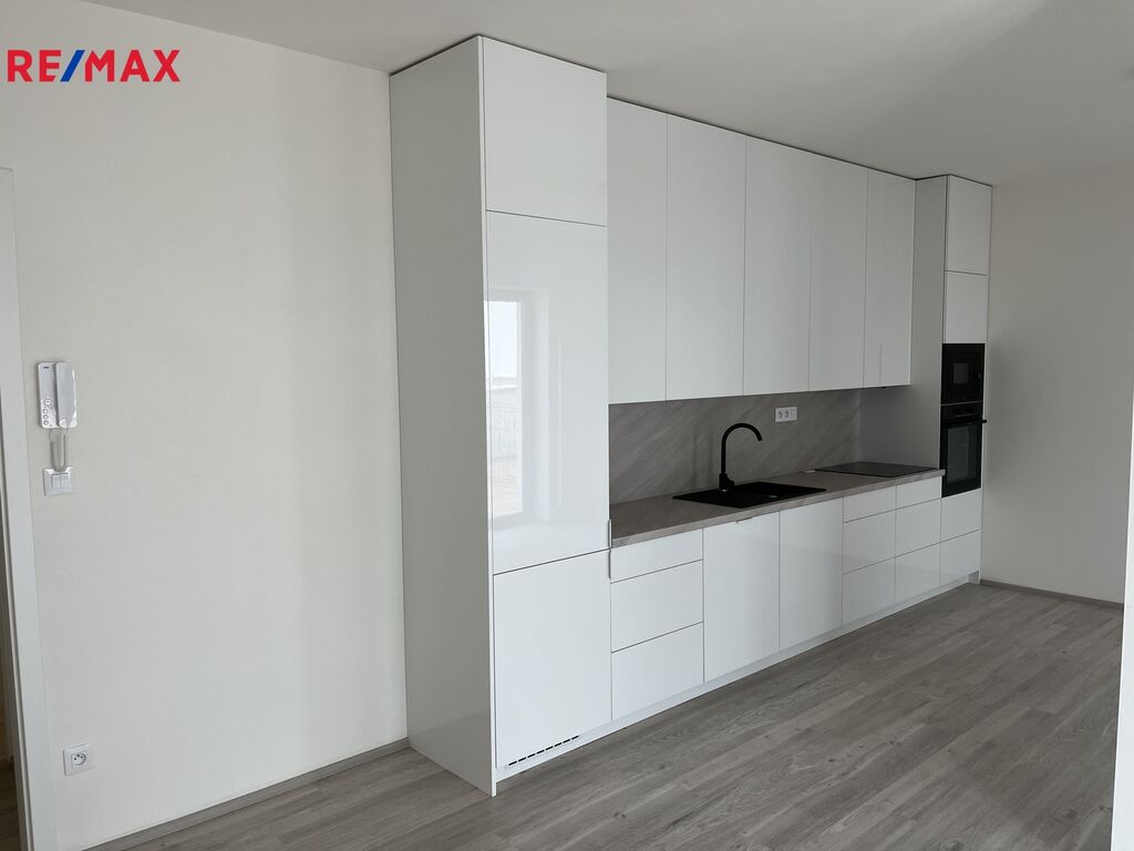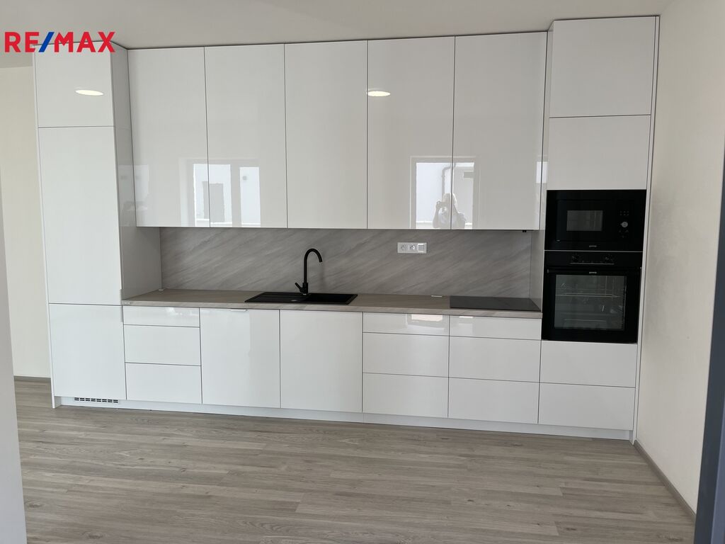 prostorný obývací pokoj s kuchyňským koutem, který je již vybaven moderní kuchyňskou linkou včetně spotřebičů. Ložnice se vstupem do samostatné šatny. Koupelna s vanou, umyvadle a wc značky Villeroy & Boch.