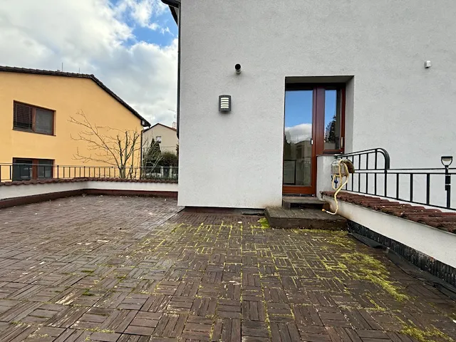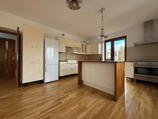 TOMPAT Reality Vám nabízí k pronájmu světlý a velmi prostorný mezonetový byt 3+kk o užitné ploše 115 m², který se nachází v rodinném domě v klidné lokalitě Praha - Velká Chuchle, ulice Dolomitová. Byt disponuje terasou ve 2. NP o velikosti 25 m² s příjemným výhledem. V každém patře se nachází samostatná koupelna a toaleta. K vybavení bytu patří kuchyňská linka s myčkou nádobí, velkým plynovým sporákem (90 cm), lednicí, v koupelně je k dispozici pračka. Měsíční nájemné činí 29 000 Kč + 7 000 Kč poplatky. Bytová jednotka se pronajímá bez možnosti využívání zahrady. Parkování je možné před domem, bez zón. Poloha bytu nabízí klidné bydlení s dobrou dostupností do centra města. Majitel požaduje vratnou kauci ve výši jednoho měsíčního nájmu. Stejná částka je i provizí realitní kanceláře. Bytová jednotka je ihned k nastěhování.