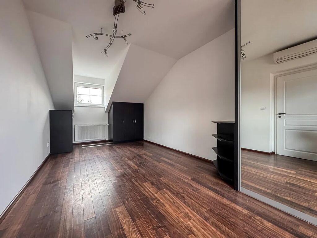 • patro: tři samostatné pokoje (cca 19 m², 18 m² a 15 m²), z jednoho pokoje vstup na balkon a klimatizační jednotka, koupelna s vanou a dvěma umyvadly, druhé WC