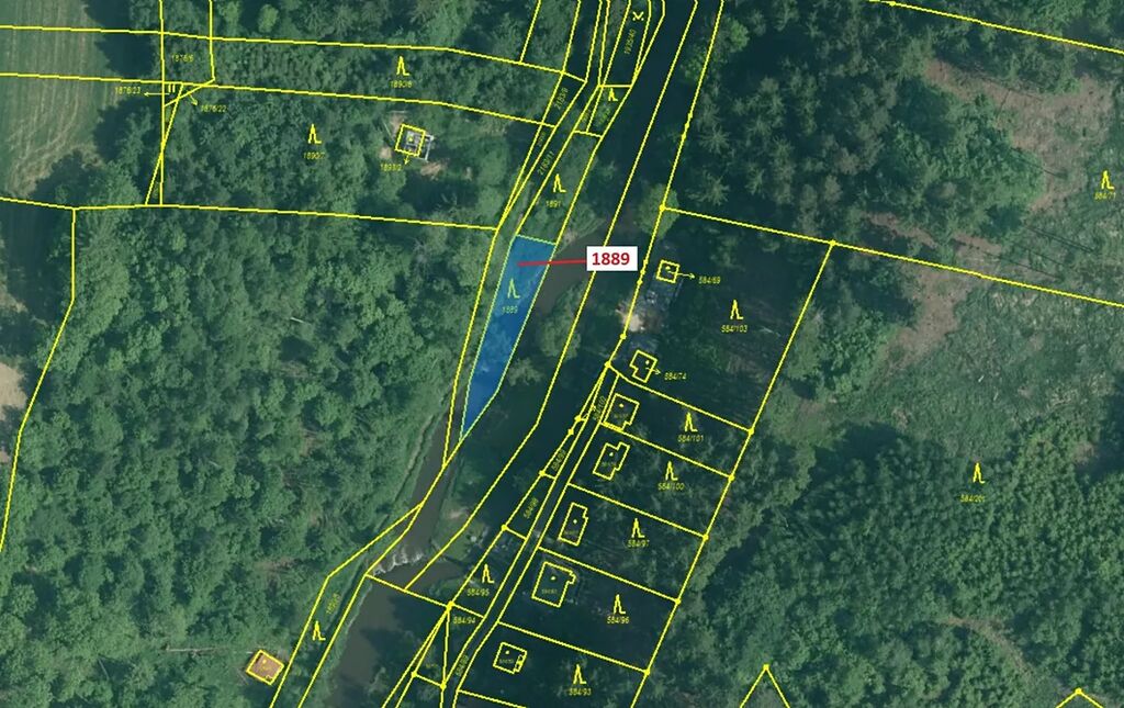 Lesní pozemek o výměře 365 m2, parcelní číslo 1889, podíl 1/1, katastrální území Dolní Stropnice, obec Římov, obec s rozšířenou působností České Budějovice, okres České Budějovice, Jihočeský kraj.