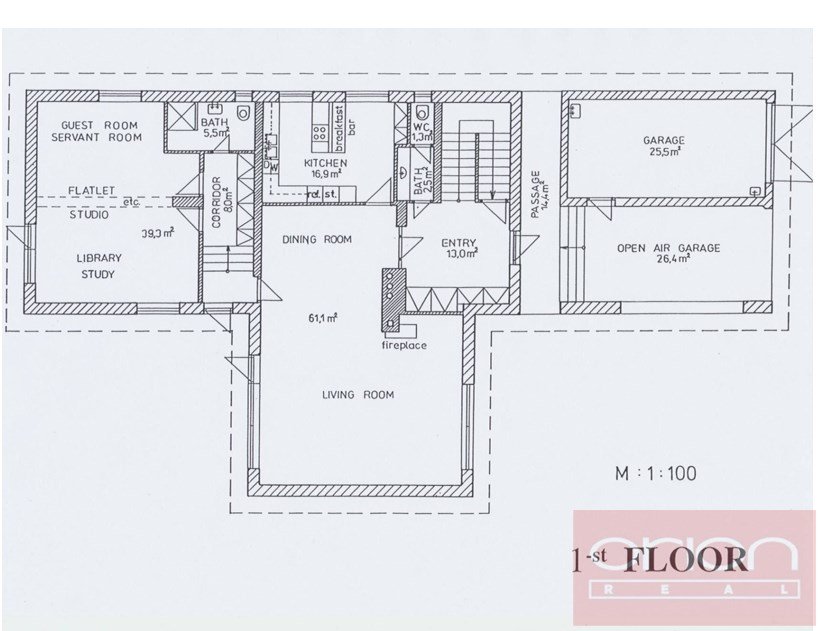 Nabízíme k pronájmu nezařízený rodinný dům 6+1 s udržovanou zahradou (1000 m2) v klidné lokalitě Prahy 4 - Kunratice nedaleko Britské mezinárodní školy. Dům má celkovou plochu 417 m2 a nabízí vstupní halu, prostorný obývací pokoj s jídelnou a krbem (61 m2) , plně vybavenou kuchyň s novými spotřebiči Bosch, 5 ložnic s vestavěnými skříněmi, hlavní ložnice má vlastní koupelnu, 4 další koupelny, 2 šatny, fitness místnost a vinný sklípek, prádelnu. Na podlahách jsou parkety a dlažba. K vybavení domu patří zabezpečovací systém, satelitní anténa, telefonní linky, internet. K dispozici garáž pro 2 auta, přístřešek pro 1 auto + dvě další parkovací místa na pozemku.