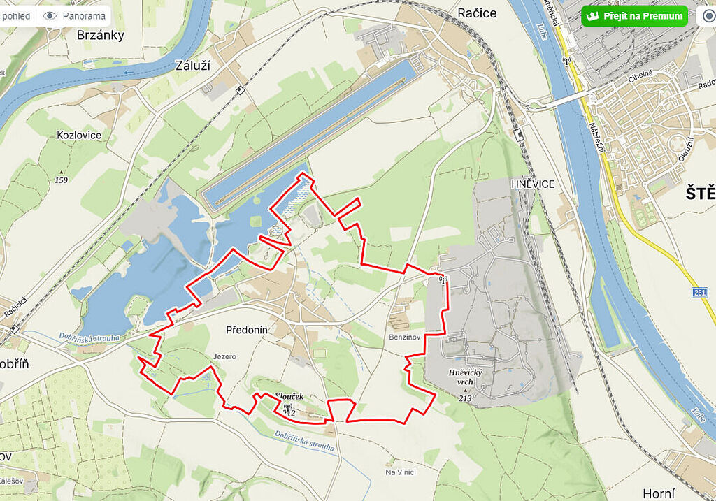Jedná se o rovinatý pozemek o rozloze 15 382 m² na okraji katastru obce. V této části převažuje rekreační zástavba a nová zástavba rodinných domů. V blízkosti se nachází pískovna a plavební kanál Račice. V územním plánu jsou pozemky vedeny jako plochy občanského vybavení a plochy pro tělovýchovná a sportovní zařízení.