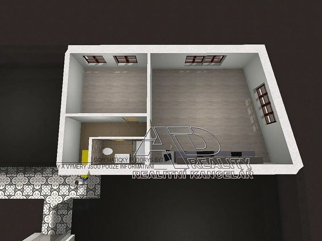 ►[byt_06] ► atypický rohový byt velikosti 2+kk, celková plocha bytu [53m2], podlahová plocha [53m2]. Možnost pronájmu sklepní kóje [2,0m2] umístěné ve dvorním traktu budovy po dohodě.