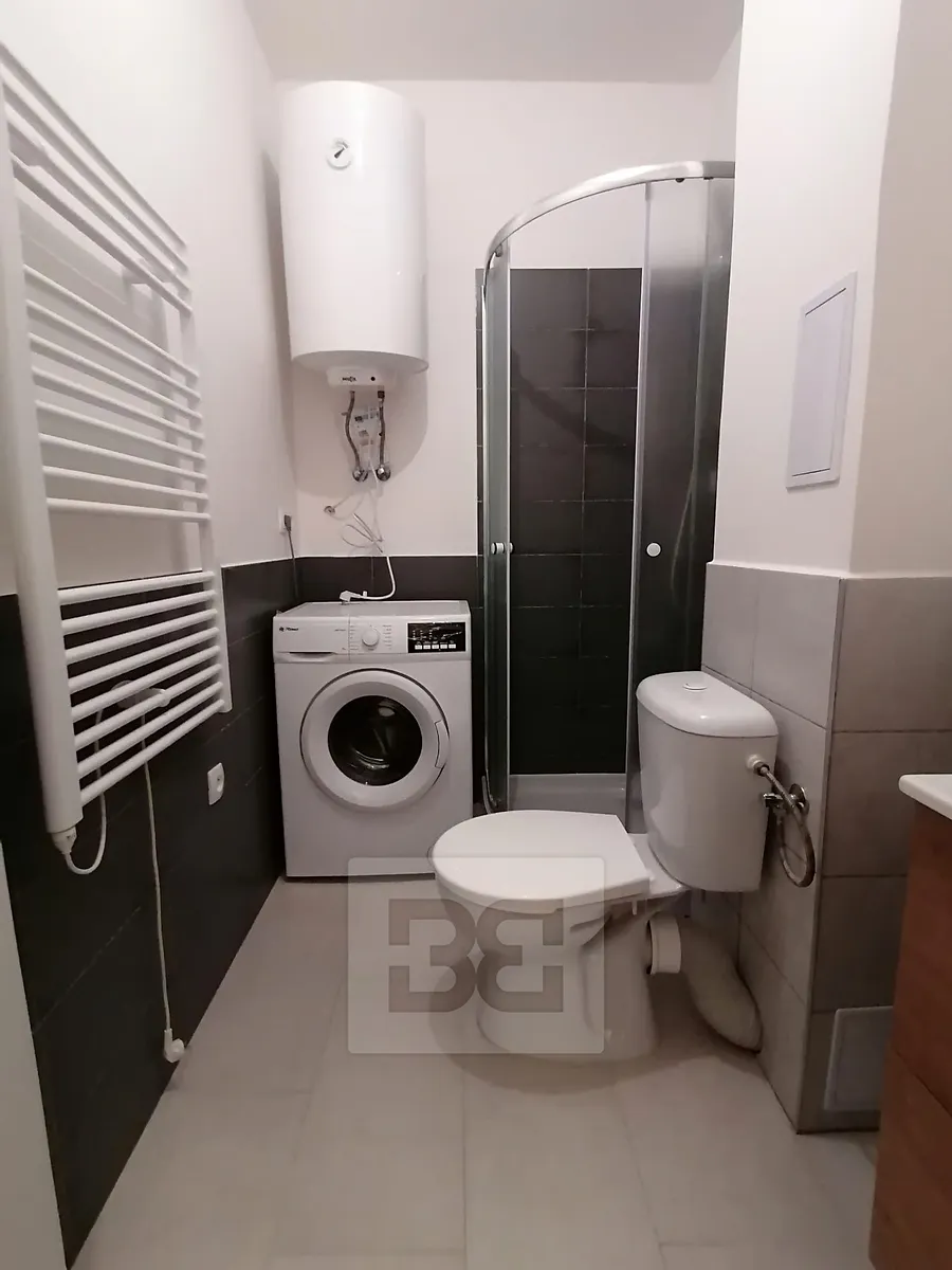 Byt působí velmi příjemně a moderně. Z předsíně je vstup do koupelny se sprchovým koutem, toaletou a pračkou. Hlavní pokoj je prostorný, doplněný o praktické spací patro, které zvětšuje užitnou plochu a odděluje klidovou zónu. Součástí je také zařízený kuchyňský kout.