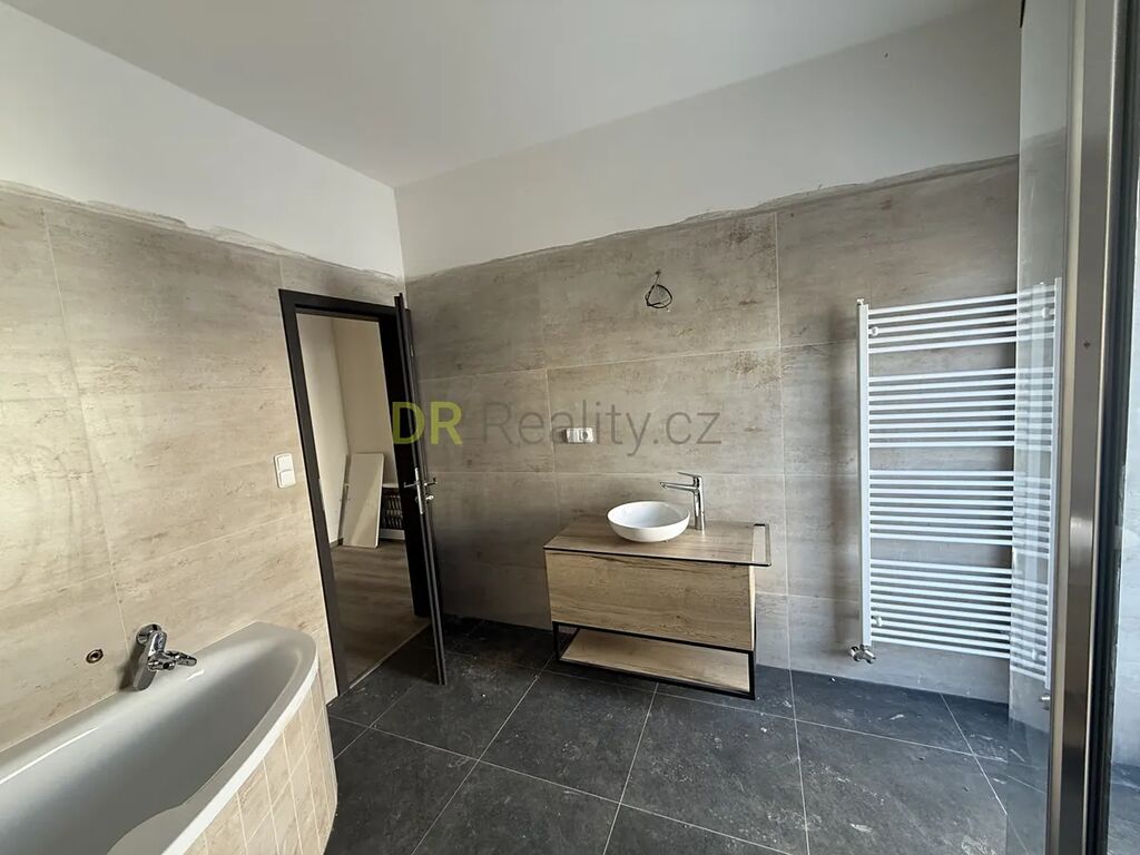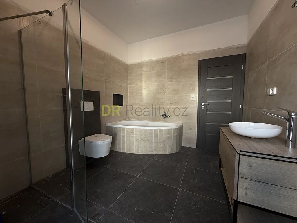 Nabízíme k pronájmu novostavbu rodinného domu 4+kk s terasou a zahradou. Tento dům má podlahovou plochu 110 m, terasu 25 m, garáž pro 2 auta (vrata na dálkové ovládání) a zahradu 220 m.