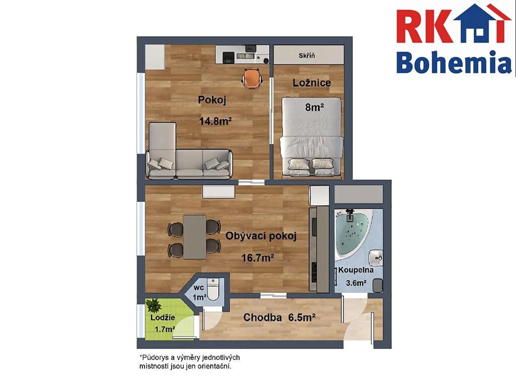 Byt je v dobrém stavu a připravený k okamžitému nastěhování. Příjemnou koupelnu doplňuje samostatné WC a prosklený balkon, který interiéru dodává světlo a příjemné propojení s venkovním prostorem. Praktická vestavná skříň nabízí dostatek úložného místa.