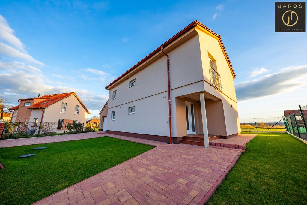 Nabízíme vám prodej samostatně stojící novostavby rodinného domu o dispozici 4+1 s garáží na pozemku o velikosti 525 m2 nacházejícího se obci Smečno. V přízemí domu se nachází garáž, zádveří, komora, koupelna se sprchovým koutem a společným WC, obývací pokoj se vstupem na terasu, spojovací chodba se schodištěm, kuchyně a jídelna se vstupem na terasu. V patře domu jsou tři samostatné ložnice, koupelna s vanou a společným WC . Velmi jednoduchou stavební úpravou lze ze současného 4+1 získat 5+1.
