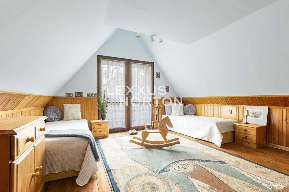 2. patro: prostorná ložnice a odpočinkový prostor nad schodištěm – ideální pro čtení, relax nebo jako prostor pro děti.