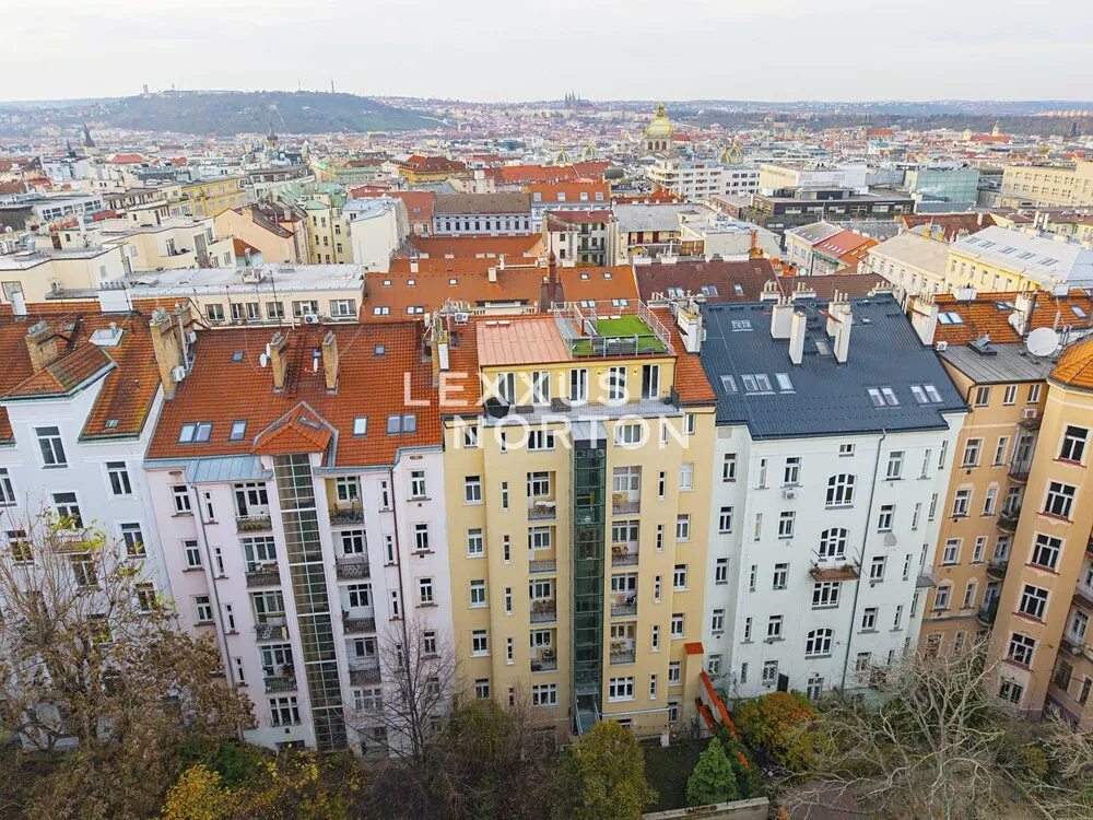 Byt je umístěn v posledním podlaží kompletně zrekonstruované novorenesanční budovy s výtahem, pouhých pár kroků od Náměstí Míru a Vinohradského divadla. Hlavní dominantou je velkorysá střešní terasa s dechberoucím výhledem na celou metropoli. Druhá, klidová terasa do vnitrobloku, která je po celé délce bytové jednotky.