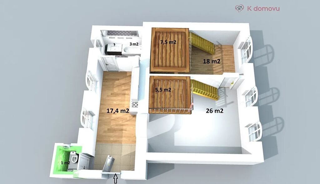 Prodej bytové jednotky 2+1 o přibližné podlahové ploše 66 m2 v prvním nadzemním podlaží historického cihlového domu. Díky výšce stropu 3,6 m2 jsou v obou pokojích zbudované dřevěné podesty o výměrách 5,5 m2 a 7,5 m2 a tak k základní podlahové výměře využitím podest například na spaní získává byt dalších 13 m2. K bytu rovněž patří komora 2 m2, která je umístěna na chodbě domu hned naproti vstupním dveřím do bytu. Byt je aktuálně využíván jako kadeřnictví a lze jej takto užívat i nadále. Byt je samozřejmě vhodný díky své dispozici a umístění v centru města jako investiční, například pro ubytování studentů nebo pracujících.