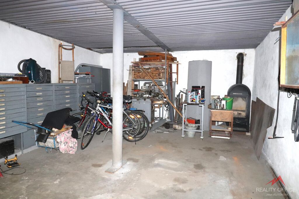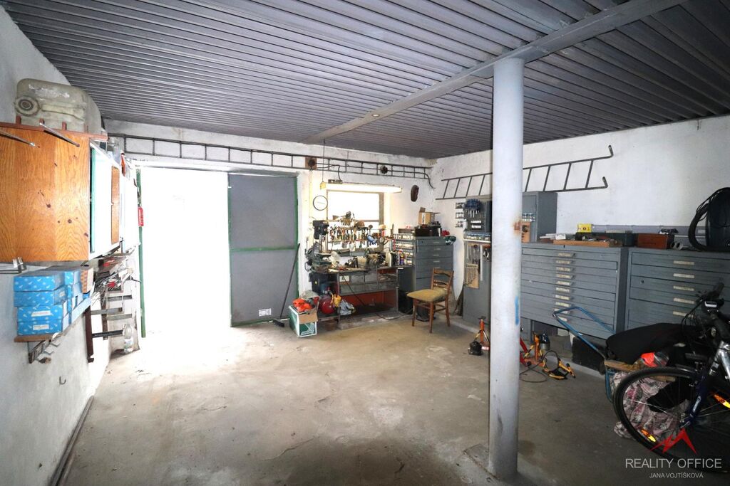 Zprostředkujeme prodej velké garáže o ploše 38m2, která může zároveň sloužit jako dílna nebo sklad. Garáž je zděná z cihel a panelů, má plechová vjezdová vrata 2.10m x 2m, střecha je vlnitý eternit + škvárobeton + ipa, podhled lisovaný plech, je zde velké okno 1m x 1m, podlaha betonová. Zavedená elektřina a vlastní elektroměr. Jsou zde krbová kamna k vytápění. Garáž se prodává včetně vybavení, je zde ponk, elektrický vrták, různé regály, skříň a mnoho nářadí.