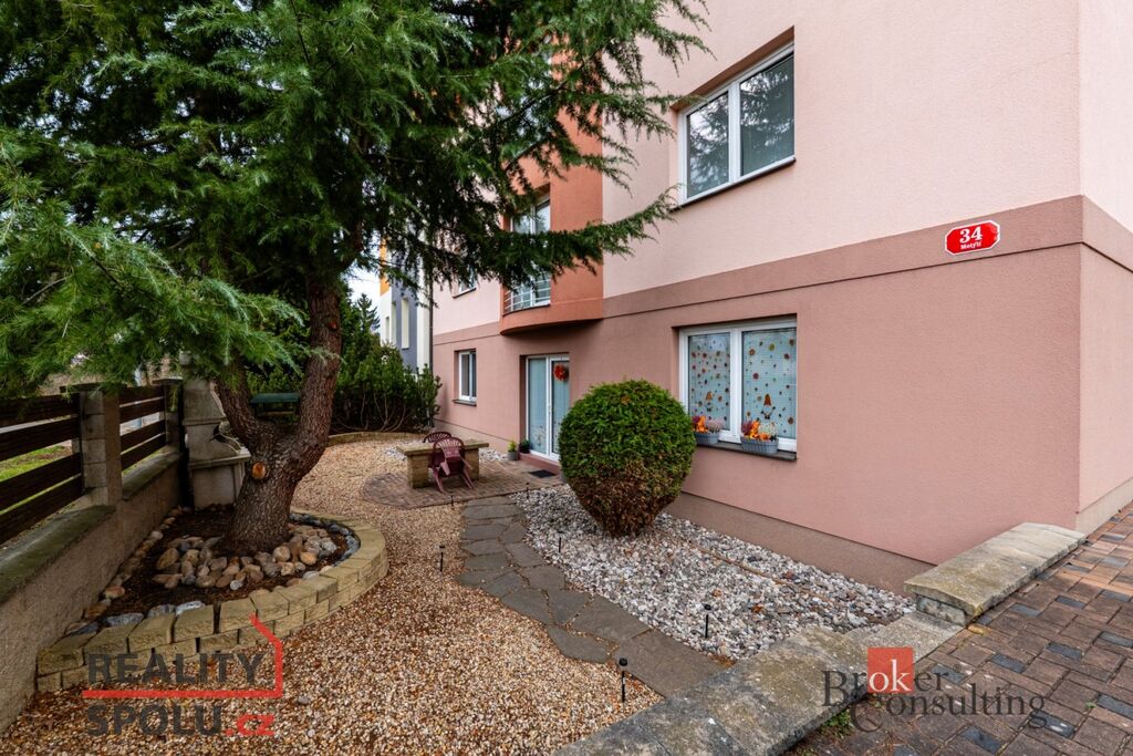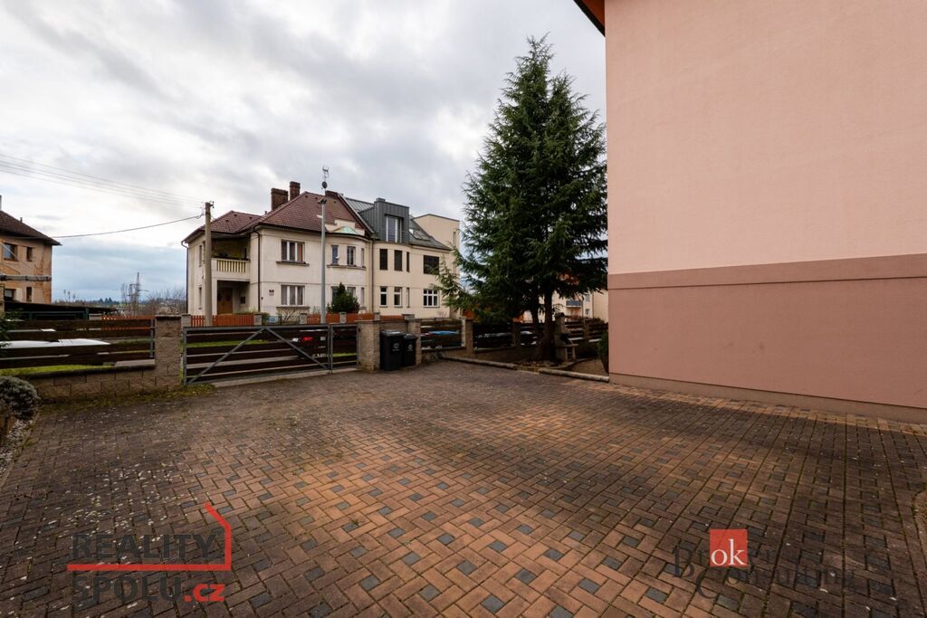 Dům je kompletně oplocený a k bytu náleží hezká společná zahrádka, kterou lze využívat k posezení.