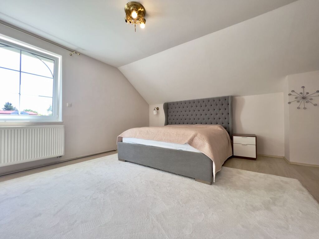 Vila je v osobním vlastnictví, byla postavena v roce 2005 a sestává ze 7 prostorných pokojů, obývacího pokoje spojeného s kuchyní a 2 koupelen. Byla zohledněna i současná potřeba- k dispozici budoucích obyvatelů je garáž se 2 parkovacími místy.