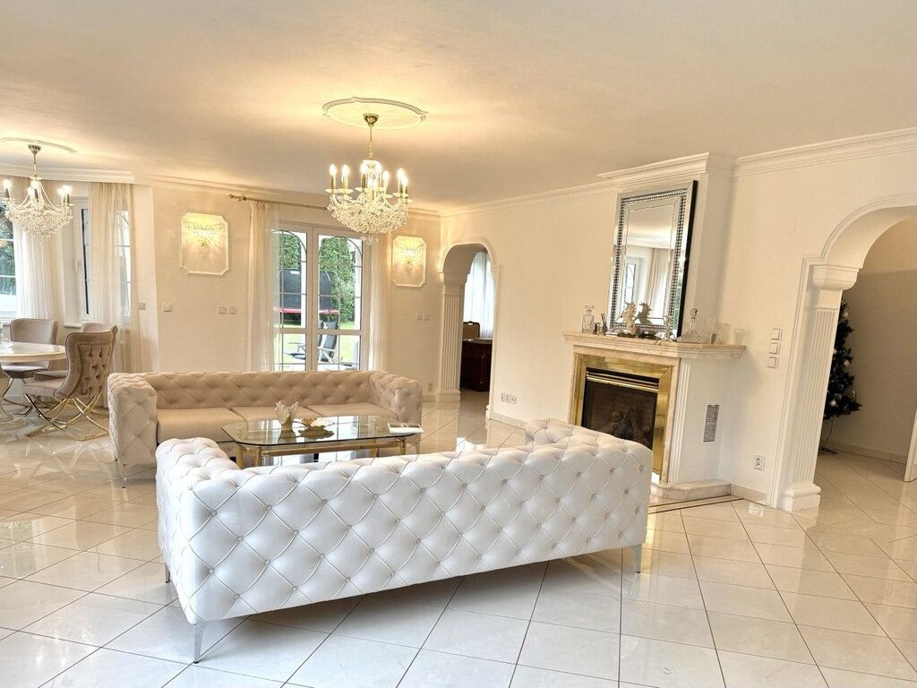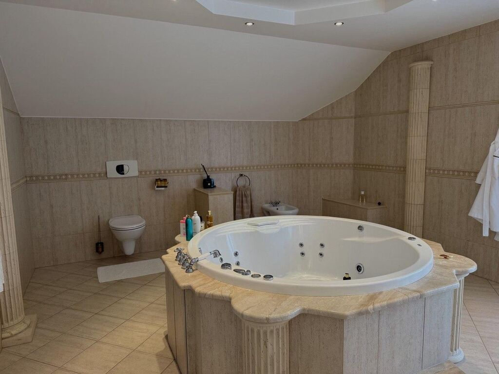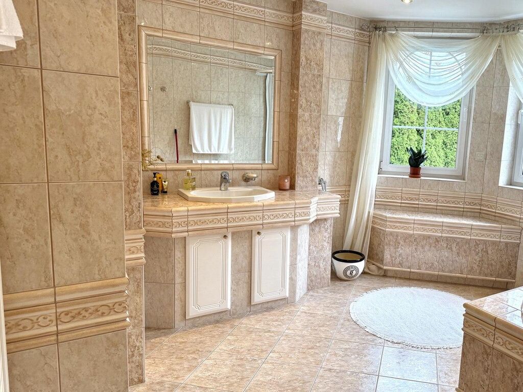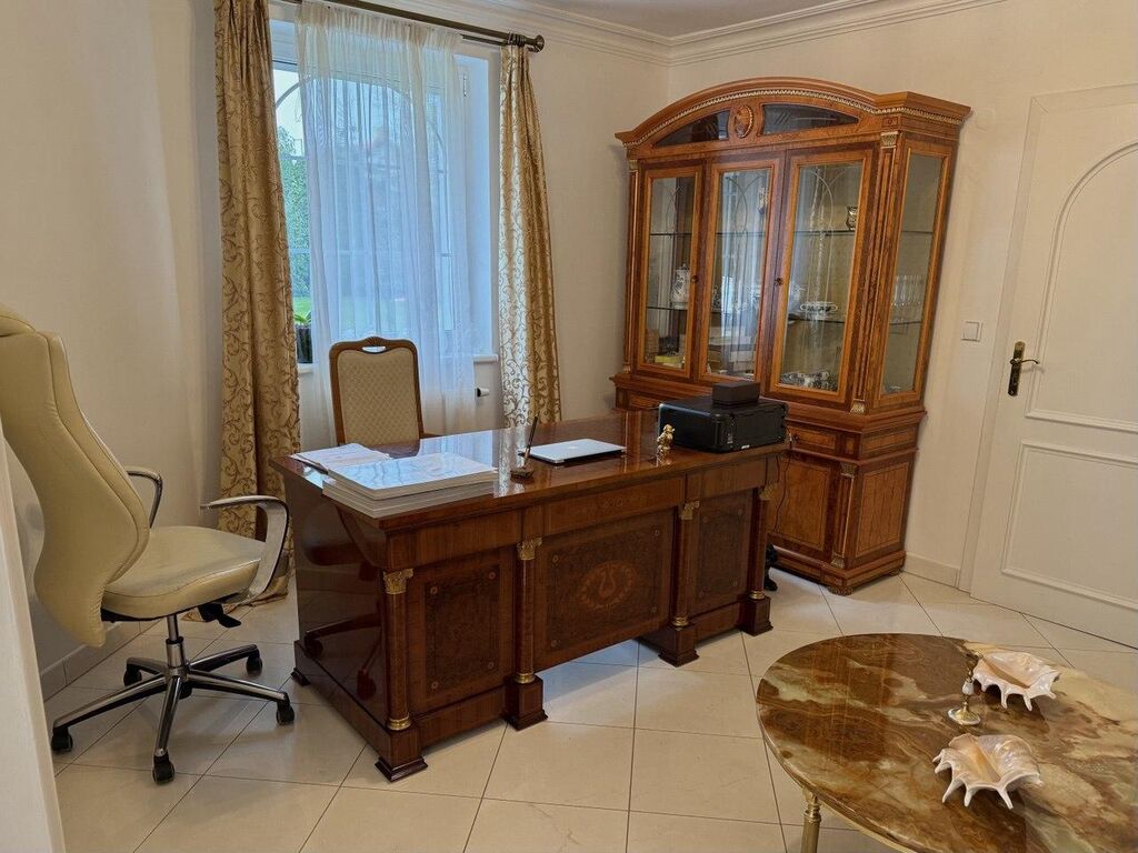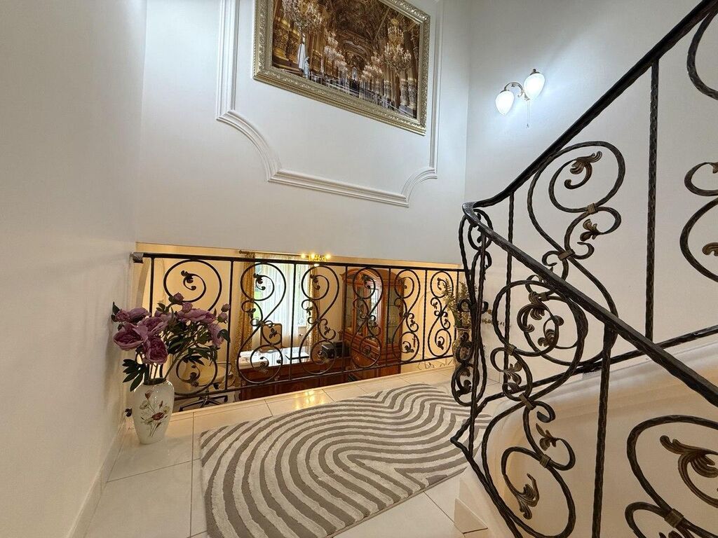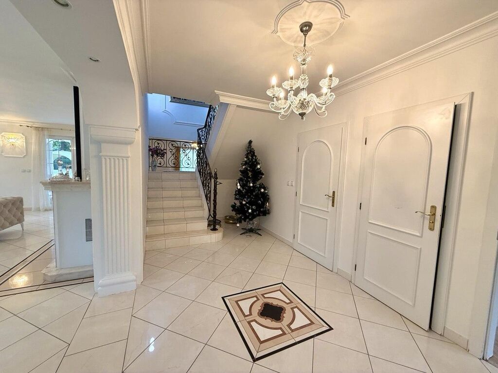 Výbava: Italsky mramor, vyhřívání podlahy, přírodní dřevěné parkety, zábradlí a ruční umělecké kování; systém automatického zavlažování zahrady; elektrické rolety, alarmy; masážní sprchy a vany atd.