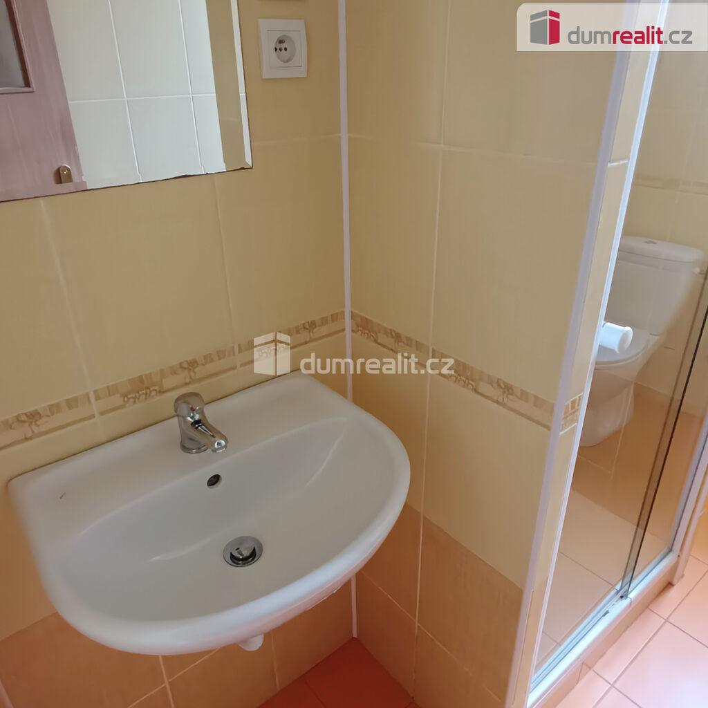 Koupelna je vybavena sprchovým koutem, toaletou a nezbytným příslušenstvím. Zde je také umístěn samostatný plynový kotel na ohřev vody. Teplo je etážově rozvedeno do radiátorů po celém bytě. Okna jsou plastová. Část domovní chodby slouží jako uzavřená předsíň v podílovém užívání pro tento i sousední byt. Je uzamykatelná a dobře všem poslouží k odkládání venkovní obuvi a ošacení. O čistotu a úklid společných domovních prostor se nájemníci starají sami. Bytová jednotka se nabízí k okamžitému podnájmu max. dvou osob, nekuřáků bez domácích mazlíčků.