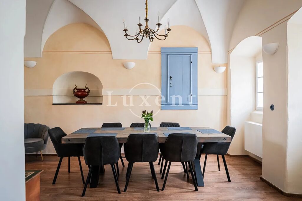 Na pomezí pohádkového snu a moderní elegance nabízíme k prodeji výjimečný renesanční zámeček situovaný nedaleko Českých Budějovic v jižních Čechách. Prodej zahrnuje historickou zámeckou budovu s pěti ložnicemi a stylově zařízenými interiéry, dva butikové apartmány v samostatné budově, venkovní vyhřívaný bazén s protiproudem, soukromý rybník obklopený parkem a vodním domkem ideálním pro letní ubytování. Součástí areálu je také zámecká stodola s kapacitou až 70 míst, která byla precizně přizpůsobena pro pořádání různorodých akcí, jako jsou oslavy, vernisáže, přednášky či koncerty. Dále zde naleznete samostatnou garáž pro čtyři vozy, francouzskou bylinkovou a květinovou zahradu s okrasnými jezírky, romantické pergolové rozárium a nádvoří zdobené ústřední uměleckou plastikou.