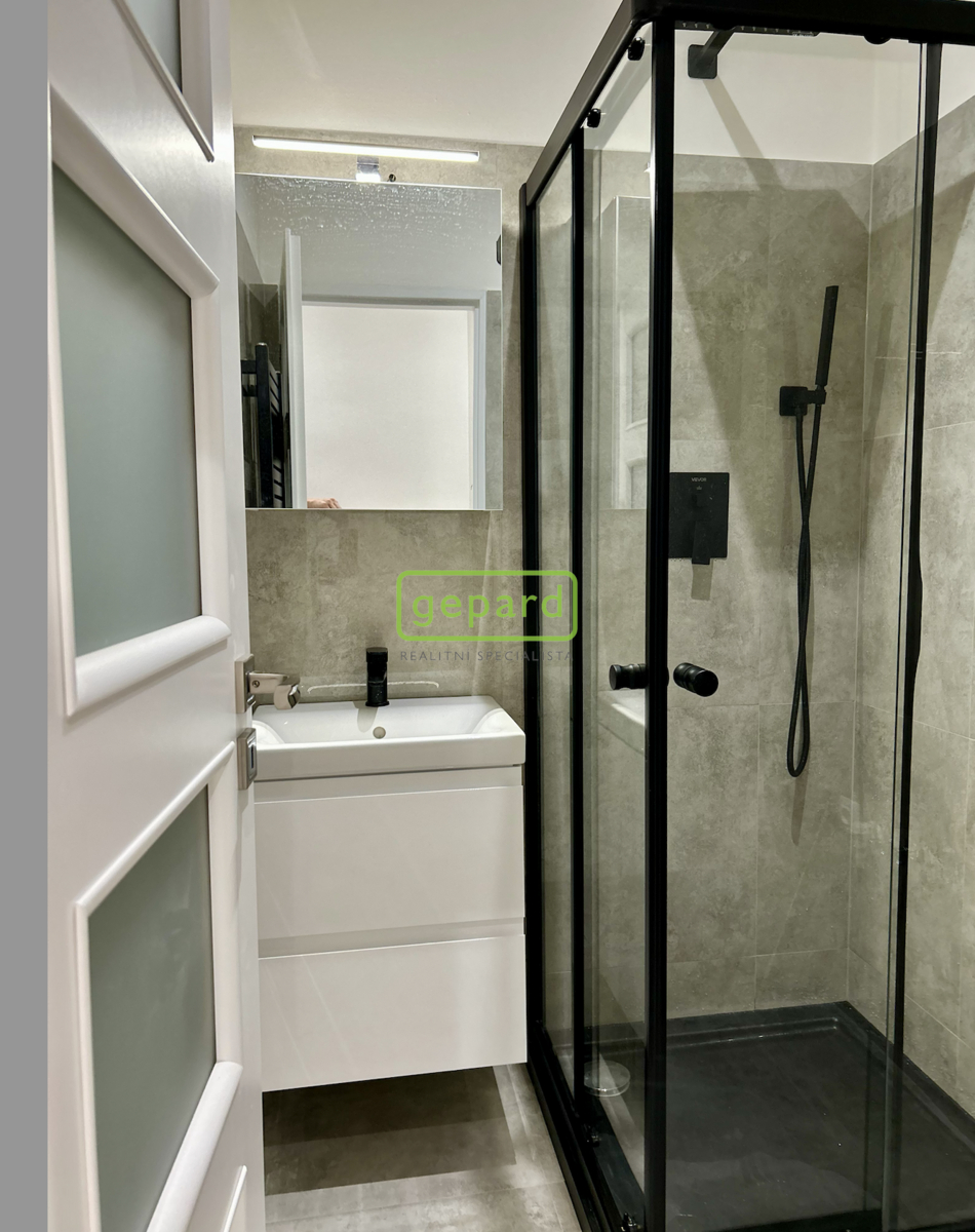 • koupelna - sprchovací kout, koupelnová skříňka, zrcadlo, příprava na pračku