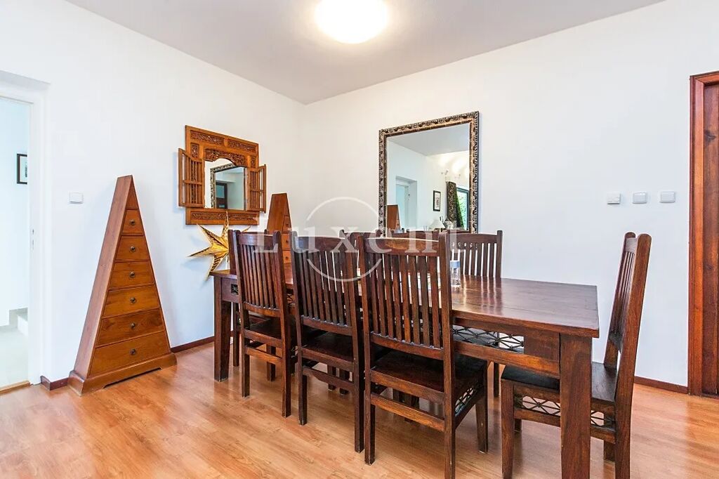 Na podlahách obytných místností jsou parkety. V domě nechybí internet, zabezpečovací systém, satelitní anténa a lze ho pronajmout vybavený či bez zařízení.