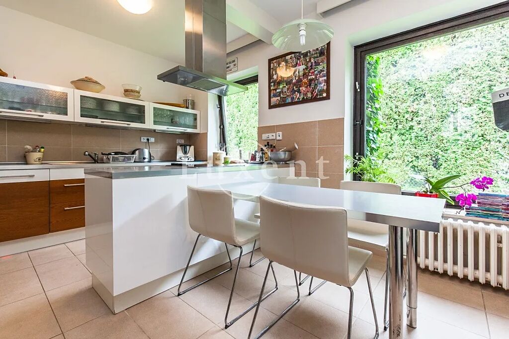 Nabízíme pronájem luxusního a prostorného rodinného domu v klidné lokalitě vilové čtvrti v Praze 4 – Kunraticích. Dům je zasazen v krásné zahradě s plochou 1000 m² a skýtá tedy dostatek soukromí. Na pozemku jsou dvě venkovní parkovací místa, další parkovací místo je s přístřeškem, dům disponuje jednou garáží, dostatek parkovacích míst je i před pozemkem na ulici.
