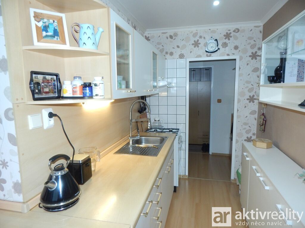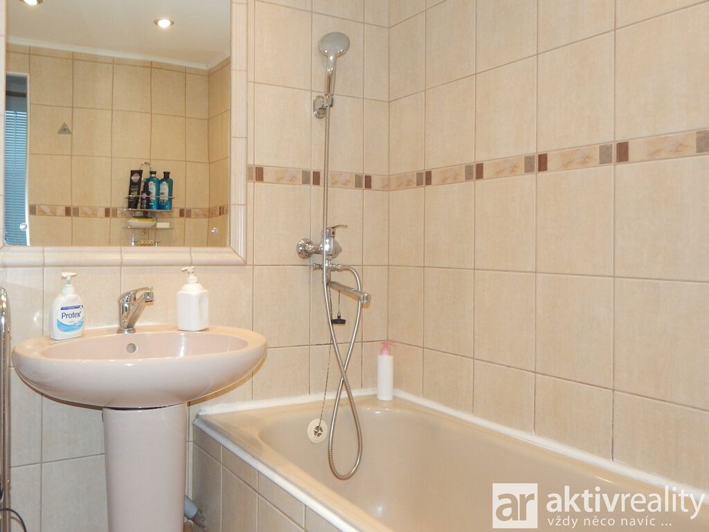 Částečná rekonstrukce zahrnovala vkusné obložení koupelny včetně dvou zrcadel, nové vany, toalety, snížení stropů s bodovým osvětlením, které dotváří také příjemné pracovní prostředí kuchyně, která je vybavena zánovní kuchyňskou linkou s kombinovaným sporákem a zabudovanou pračkou.
