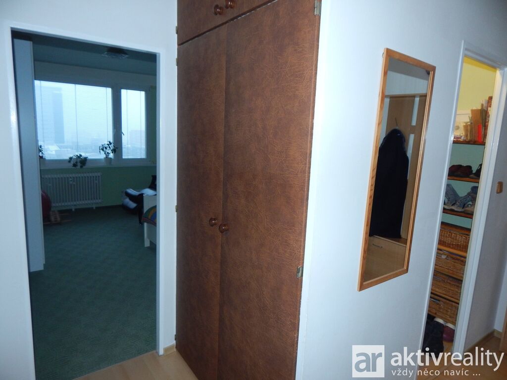 Bytová jednotka o celkové rozloze 64 m2, v posledním devátém patře, včetně sklepní koje a komory v mezipatře, působí příjemným, prostorným a zároveň útulným dojmem díky praktickému rozvržení pokojů, kuchyně s prostorem na jídelní set a samostatnou šatnou zajišťující dostatek úložného prostoru.