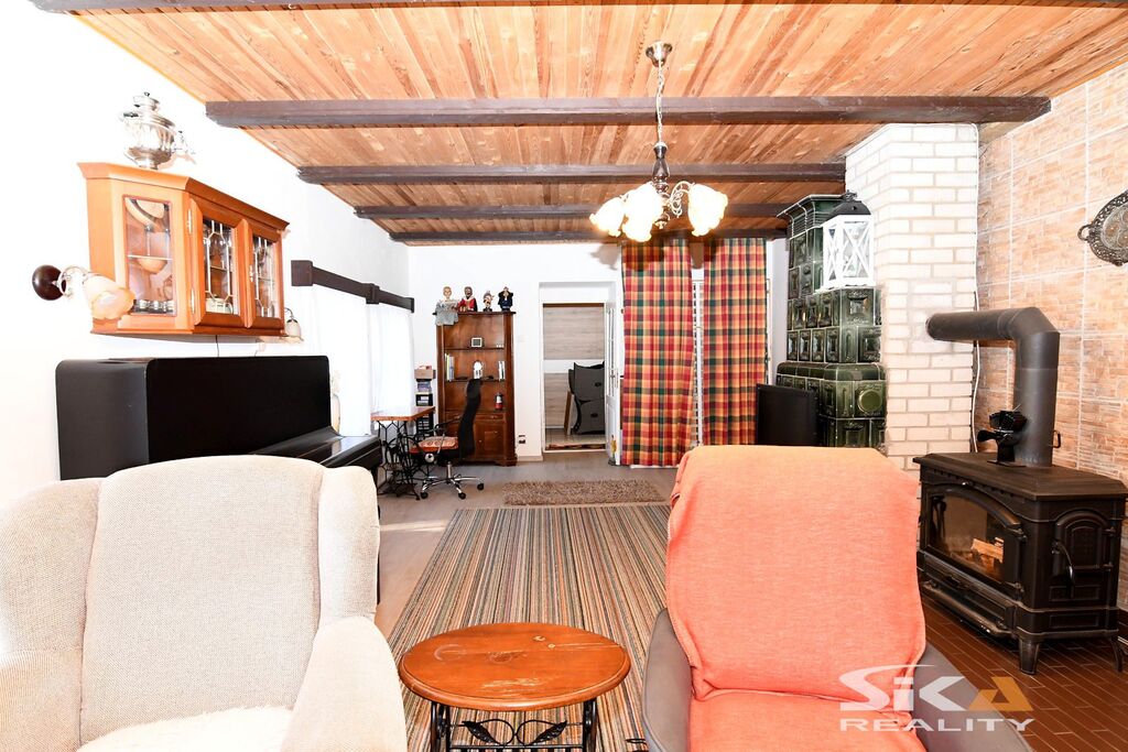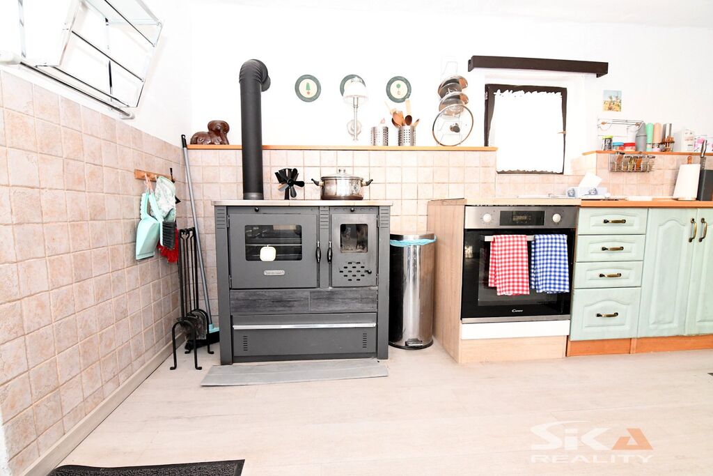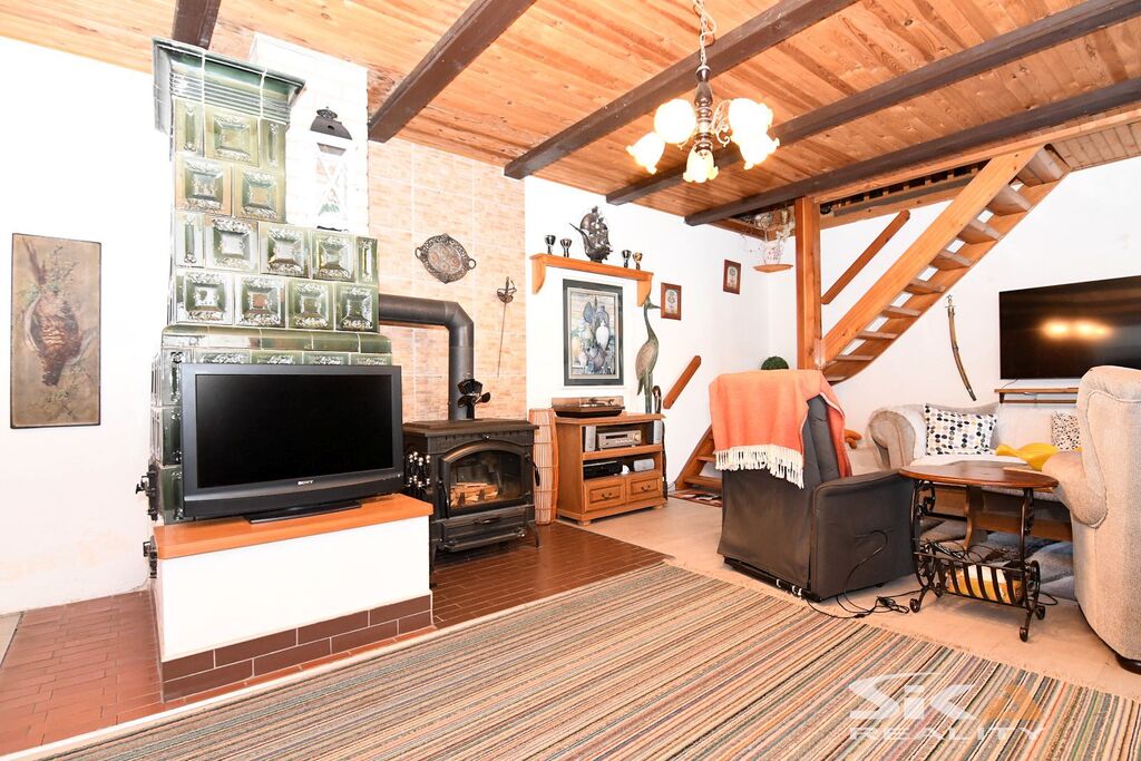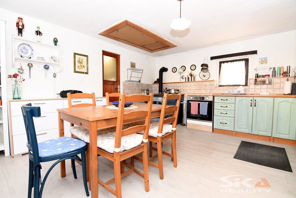 Nabízíme k prodeji původní stavbu bývalé kovárny, která byla v posledních letech využívána jako rekreační chalupa. Nemovitost se nachází v obci Vojnice u Koštic, v malebném prostředí Českého středohoří – kraje, který potěší každého milovníka klidu, přírody a nenáročné turistiky. Objekt je nepodsklepený, s jedním nadzemním podlažím a využitým podkrovím a je umístěn na pozemku o celkové výměře 655 m2. Obytná část má charakteristické otevřené průčelí, které slouží jako kryté venkovní parkování a zároveň hlavní vstup do interiéru. V přízemí se nachází vstupní chodba s přímým výstupem na zahradu, koupelna se sprchovým koutem a WC, kuchyně se vstupem do hospodářské části a obývací pokoj s dřevěným schodištěm do podkroví, které nabízí dvě útulné ložnice s okny do zahrady. Na obytnou část navazuje praktický hospodářský trakt – garáž s dílnou a skladovací místností, která je přístupná z kuchyně a zároveň z ní lze vstoupit přímo na zahradu. Objekt je vytápěn krbovými kamny v obývacím pokoji a kuchyni. Ohřev vody zajišťuje elektrický bojler. Dům je napojen na obecní vodovod, odkanalizování vede do jímky, obec plánuje vybudování kanalizace.Stavba je průběžně udržovaná a disponuje novějšími elektrickými rozvody. Za domem se rozkládá uzavřená a dobře členěná zahrada s dřevěnou pergolou pro letní posezení. Nechybí bazén, zatravněné plochy a sadové úpravy, které dávají prostoru příjemný venkovský charakter. Upozorňujeme, že obvodový půdorys průčelí evidovaný v katastru neodpovídá skutečnému provedení, vestavba dvou podkrovních místností nebyla pravděpodobně oficiálně povolena příslušnými úřady a ohradní zeď na jižní hranici zahrady neodpovídá plně skutečnému průběhu hranice sousedících pozemků, přičemž tento stav trvá již řadu let a současný majitel nemovitosti takto nabyl a po celou dobu užíval. Díky poloze nemovitosti v Českém středohoří nabízí okolí pestré možnosti pro výlety, cykloturistiku i klidné procházky krajinou. Tato nemovitost je zajímavou příležitostí pro ty, kteří hledají zázemí pro rekreaci v krásné přírodě v klidné vesničce – místo, kde se můžete na víkend odpojit od ruchu města, nadechnout se čerstvého vzduchu, užít si ticho venkova a zároveň mít po ruce dostatek prostoru pro odpočinek, rodinné setkávání i nenáročné zahradničení nebo malé domácí projekty. Doporučujeme osobní prohlídku.