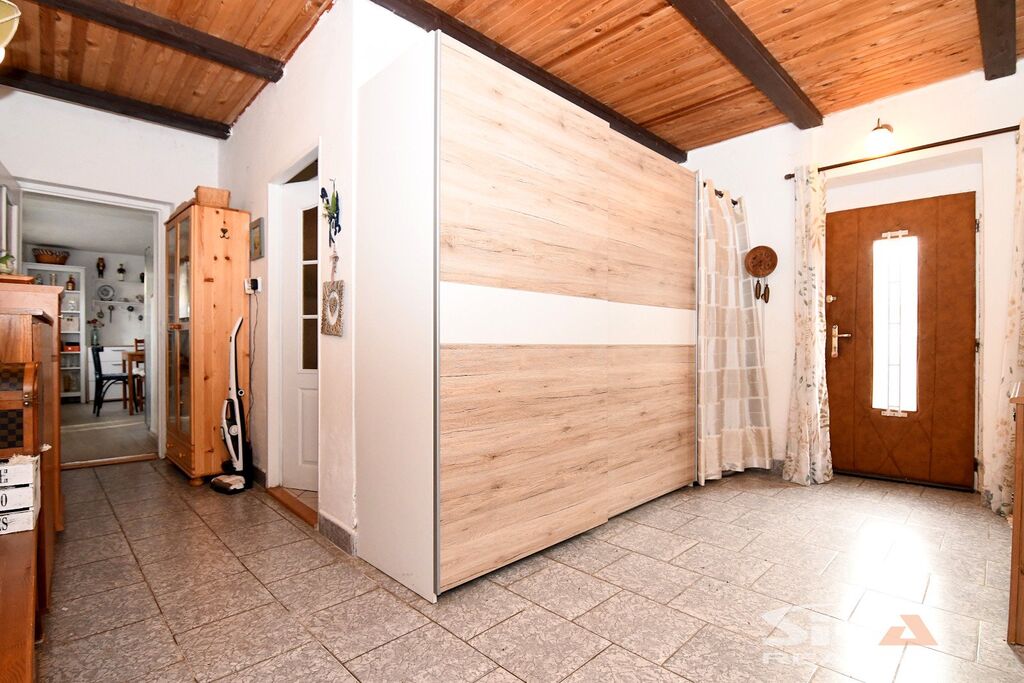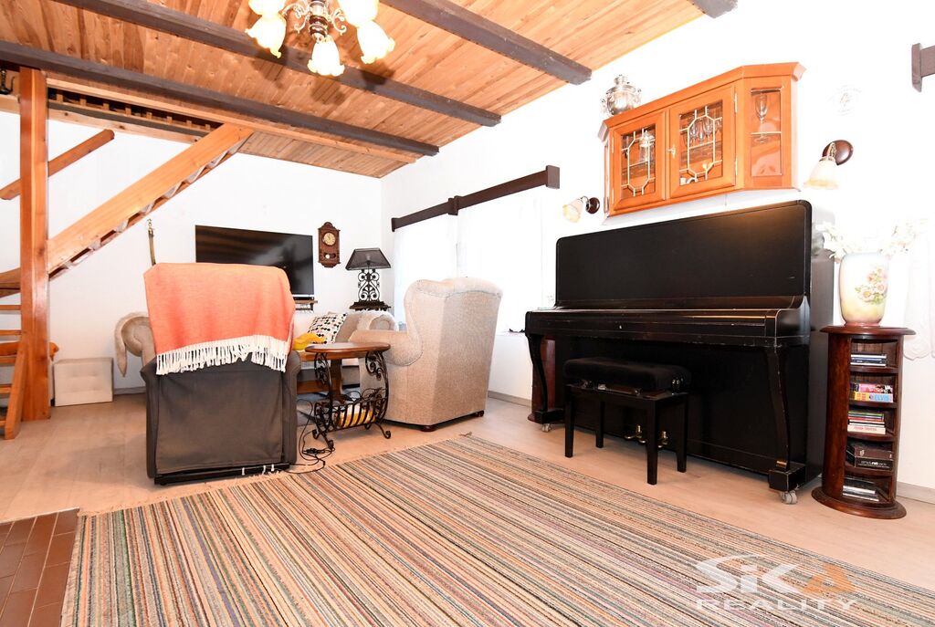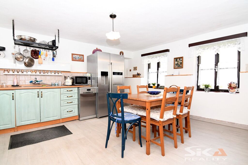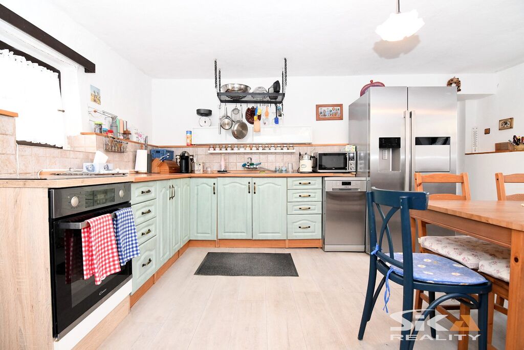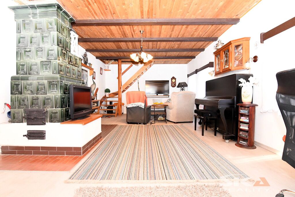 Nabízíme k prodeji původní stavbu bývalé kovárny, která byla v posledních letech využívána jako rekreační chalupa. Nemovitost se nachází v obci Vojnice u Koštic, v malebném prostředí Českého středohoří – kraje, který potěší každého milovníka klidu, přírody a nenáročné turistiky. Objekt je nepodsklepený, s jedním nadzemním podlažím a využitým podkrovím a je umístěn na pozemku o celkové výměře 655 m2. Obytná část má charakteristické otevřené průčelí, které slouží jako kryté venkovní parkování a zároveň hlavní vstup do interiéru. V přízemí se nachází vstupní chodba s přímým výstupem na zahradu, koupelna se sprchovým koutem a WC, kuchyně se vstupem do hospodářské části a obývací pokoj s dřevěným schodištěm do podkroví, které nabízí dvě útulné ložnice s okny do zahrady. Na obytnou část navazuje praktický hospodářský trakt – garáž s dílnou a skladovací místností, která je přístupná z kuchyně a zároveň z ní lze vstoupit přímo na zahradu. Objekt je vytápěn krbovými kamny v obývacím pokoji a kuchyni. Ohřev vody zajišťuje elektrický bojler. Dům je napojen na obecní vodovod, odkanalizování vede do jímky, obec plánuje vybudování kanalizace.Stavba je průběžně udržovaná a disponuje novějšími elektrickými rozvody. Za domem se rozkládá uzavřená a dobře členěná zahrada s dřevěnou pergolou pro letní posezení. Nechybí bazén, zatravněné plochy a sadové úpravy, které dávají prostoru příjemný venkovský charakter. Upozorňujeme, že obvodový půdorys průčelí evidovaný v katastru neodpovídá skutečnému provedení, vestavba dvou podkrovních místností nebyla pravděpodobně oficiálně povolena příslušnými úřady a ohradní zeď na jižní hranici zahrady neodpovídá plně skutečnému průběhu hranice sousedících pozemků, přičemž tento stav trvá již řadu let a současný majitel nemovitosti takto nabyl a po celou dobu užíval. Díky poloze nemovitosti v Českém středohoří nabízí okolí pestré možnosti pro výlety, cykloturistiku i klidné procházky krajinou. Tato nemovitost je zajímavou příležitostí pro ty, kteří hledají zázemí pro rekreaci v krásné přírodě v klidné vesničce – místo, kde se můžete na víkend odpojit od ruchu města, nadechnout se čerstvého vzduchu, užít si ticho venkova a zároveň mít po ruce dostatek prostoru pro odpočinek, rodinné setkávání i nenáročné zahradničení nebo malé domácí projekty. Doporučujeme osobní prohlídku.
