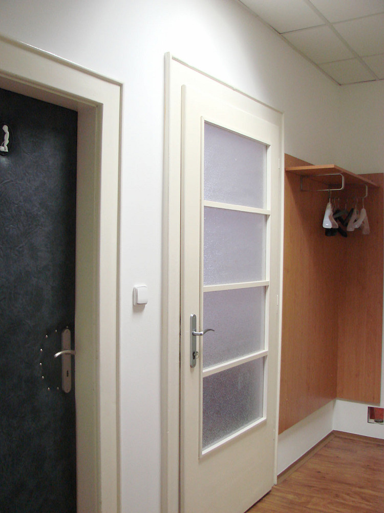 Jedná se o celé 4. NP (74 m²) v cihlovém domě bez výtahu, vytápěno plynovým kotlem. K dispozici místnost s kuchyňským koutem (16,2 m²), komorou/skladem (1,4 m²) a vyzděným balkonem/skladem (3 m²). Z prostorné předsíně s odkládací stěnou a vstupem do koupelny se sprchovým koutem (4,1 m²) a samostatného WC (1,4 m²) se dostaneme do dalších dvou světlých místností (každá 21,2 m²) s okny orientovanými na jih.