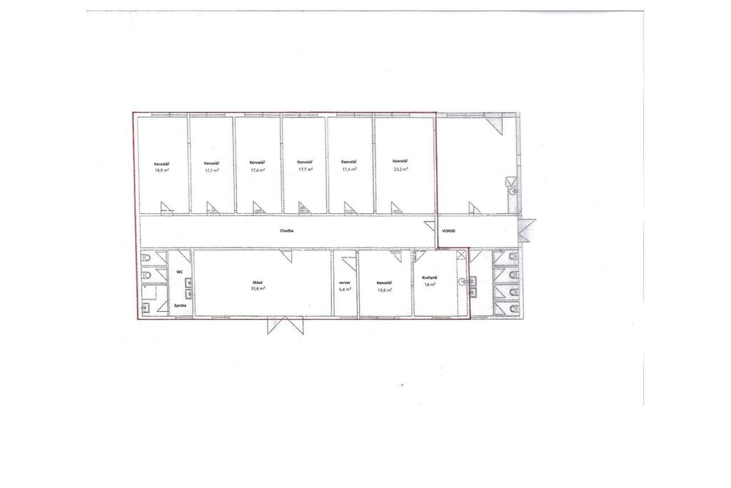 Nabízíme k pronájmu prostor po kompletní rekonstrukci, které tvoří samostatný a uzavřený celek s vlastním vstupem. Celková výměra činí 204 m² a zahrnuje sedm samostatných klimatizovaných kanceláří různé velikosti, prostornou chodbu, sklad s nakládací rampou, serverovnu se zabezpečením, kuchyňku, toalety a vlastní sprchu. Součástí je také sklad o výměře 35,6 m² s vraty a plošinou, který umožňuje pohodlnou manipulaci se zbožím.