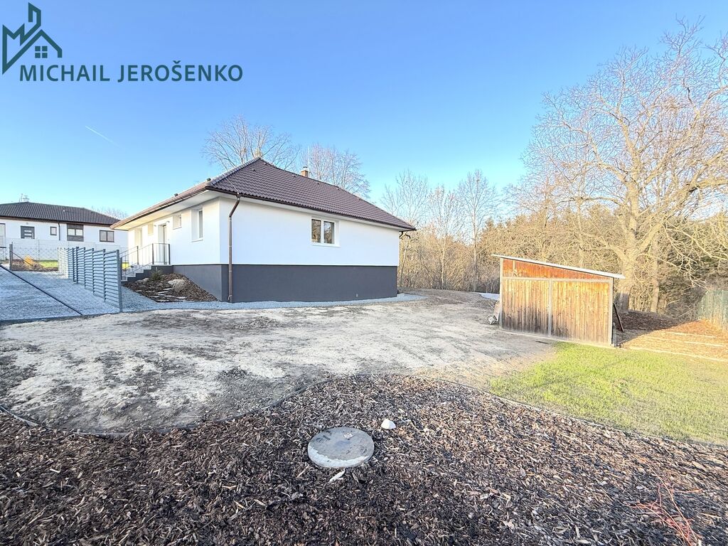 Nabízím pronájem moderního rodinného domu dispozice 4+kk s užitnou plochou 108 m2, nadstandardní terasou 37 m2 a praktickým sklepem 23 m2. Dům stojí na rozsáhlém, kompletně oploceném pozemku o výměře 1.226 m2 a díky energetické třídě B a podlahovému topení s tepelným čerpadlem zajišťuje velmi komfortní provoz s příznivými náklady. Nemovitost je napojena na veřejný vodovod a kanalizaci.