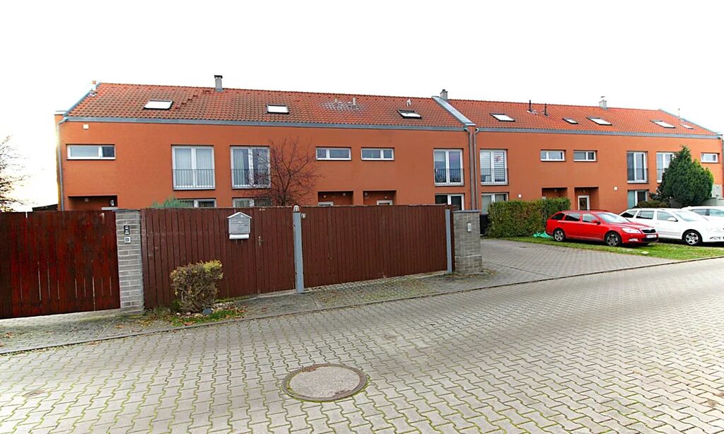 Nabízíme prostorný řadový dům, dispozičně řešen jako 4+1, se zahradou, zahradní terasou, terasou, oplocenou předzahrádkou, s parkovacím místem, v historické obci Jenštejn, 1 km od severovýchodní hranice Prahy. Vstup a vjezd k domu je samostatný, oddělen plotem, parkovací místa se nachází před domem na vlastním oploceném pozemku. Dům z r.2007 se skládá ze tří podlaží (dvě podlaží + podkroví), celková užitná plocha domu je 144,53m2. V 1. podlaží domu se nachází kuchyň (12 m2), prakticky propojena s obývacím pokojem (22 m2), z obývacího pokoje je vstup na zahradní terasu, do zahrady se vzrostlými stromy. Zahradní domek slouží skvěle jako úložný prostor. V 1. podlaží domu se nachází WC s umyvadlem. Do 2. podlaží vede pohodlné dřevěné schodiště, zde jsou dvě ložnice (17,5 a 16 m2) a koupelna s vanou a WC (přes 5 m2), s dostatkem denního světla, v koupelně je umístěný kombinovaný plynový kotel s integrovaným zásobníkem, který zajišťuje vypění domu a ohřev vody. Z jedné z ložnic je vstup na terasu. Z terasy a zahrady, zahradní terasy je díky tomu, že se dům nachází na kraji obce, volný výhled. Příjemné podkroví je velké 40 m2, není problém zde dobudovat další koupelnu. Dům je napojen na veškeré inženýrské sítě (el., vodovod, kanalizace, plyn). V místě je velmi dobrá dopravní dostupnost (bus na Černý Most, Letňany), v obci se nachází pošta, škola, školka. PENB se připravuje. Koupi domu lze financovat prostřednictvím hypotečního úběru, který rád vyřídí náš specialita.