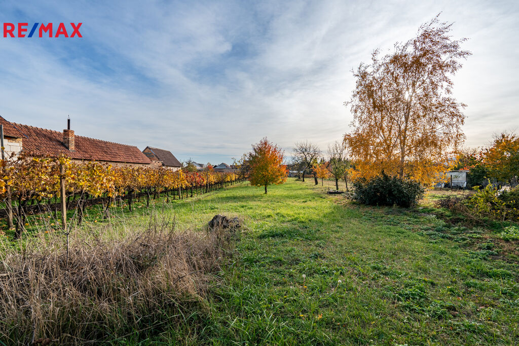 Součástí pozemku je 800 m² zatravněné plochy, ideální pro zahradu, bazén, posezení nebo menší vinohrad. Celková výměra všech pozemků činí 1477 m².